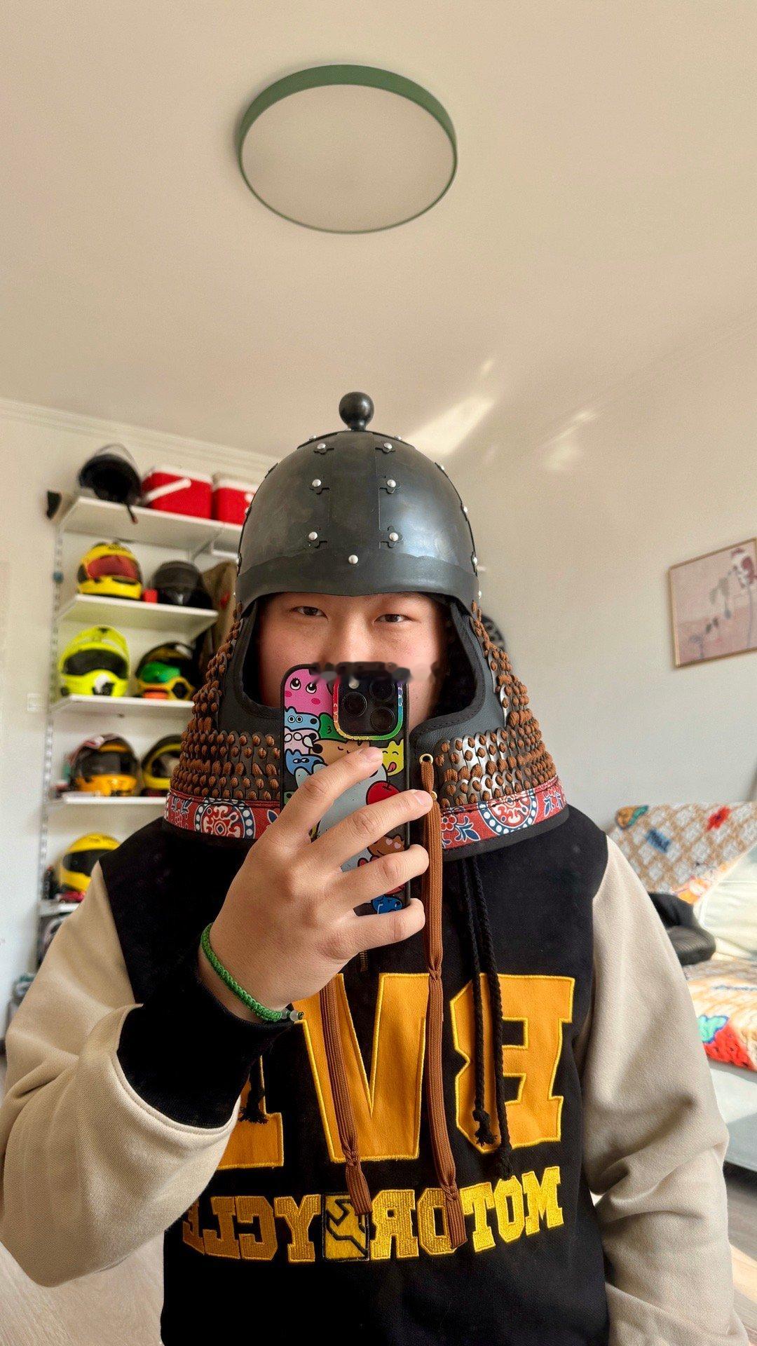 买了个唐盔,感觉挺好,想定一套盔甲了岁数越大越喜欢这些东西