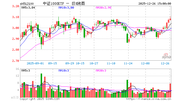 12月26日,中证1000ETF(512100)涨0.36%,成交额23.59亿元。当日份额增加5.48亿份,最新份额为259.07亿份,近20个交易日份额增加10.30亿份。最新资产净值计算值为798.93亿元。
