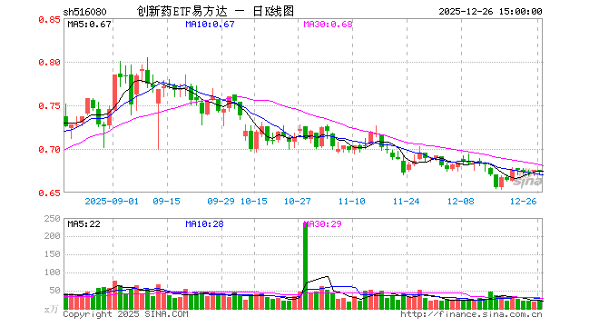 12月26日,创新药ETF易方达(516080)跌0.15%,成交额1604.91万元。当日份额增加300.00万份,最新份额为14.47亿份,近20个交易日份额增加2600.00万份。最新资产净值计算值为9.74亿元。