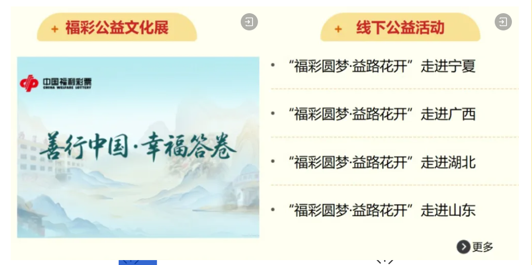 9月,中国福利彩票启动“福彩圆梦益路花开”公益宣传月活动,线上策划设计“福彩公益文化展”,线下走进山东、宁夏、湖北,广西四地开展公益活动,全面展示福利彩票公益金使用成果和助力共同富裕、共筑美好生活的社会效益,让福彩公益形象更加触手可及,深入人心。