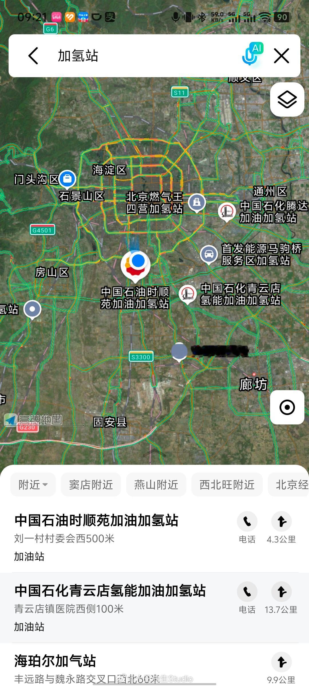 一开始觉得开Mirai比开一台纯电还要里程焦虑,但打开地图一看也还行,加氢站还是不少的,甚至马驹桥高速服务区也有~当年从北京冬奥会丰田中国引入的一批服务用车,原本以为会淘汰,没想到能见度还行,没全报废。有一个很讽刺的事儿就是,这个排放只有水的车,上的是北京的插混牌照,跟油车一样限行大v聊车国内稀有车