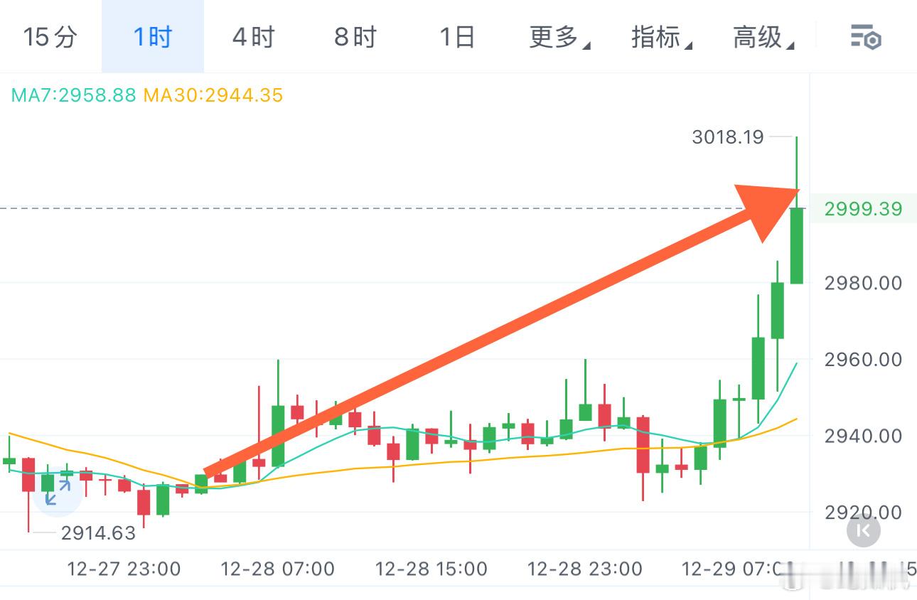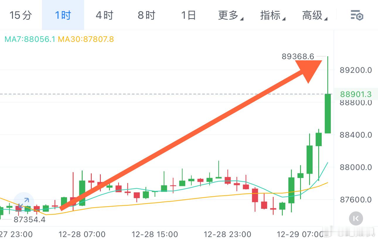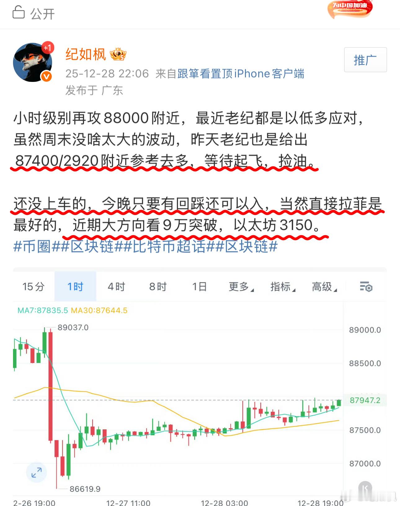 这个多单前天就开始提醒布局,昨晚再次提醒,只要回踩还可以上车,今天早间直接起飞!大饼87400拉到89400,2000空间,二饼2920拉到3010,90空间,基本上最低位的多,够不够吃?比特币超话币圈区块链以太坊eth