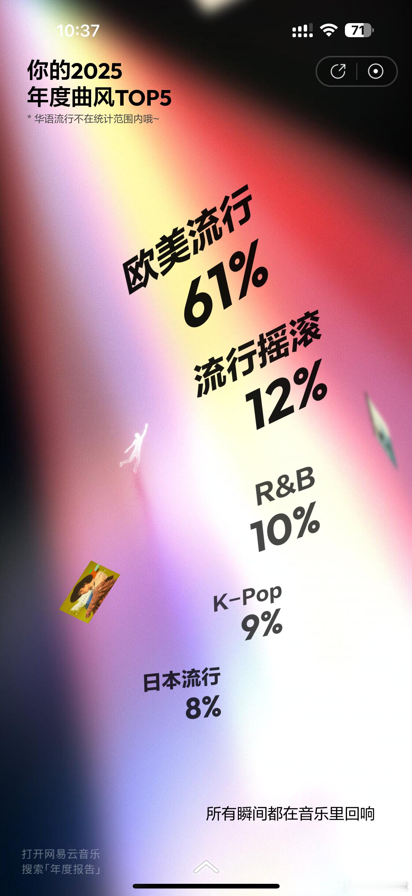 网易云年度听歌报告 网易云今年的年度报告很好看啊,色彩很丰富之前一直没注意过 自己还是个欧美音乐重度爱好者 ,2025马上过去了,希望2026可以有更轻盈的心态和更好的安全感吧
