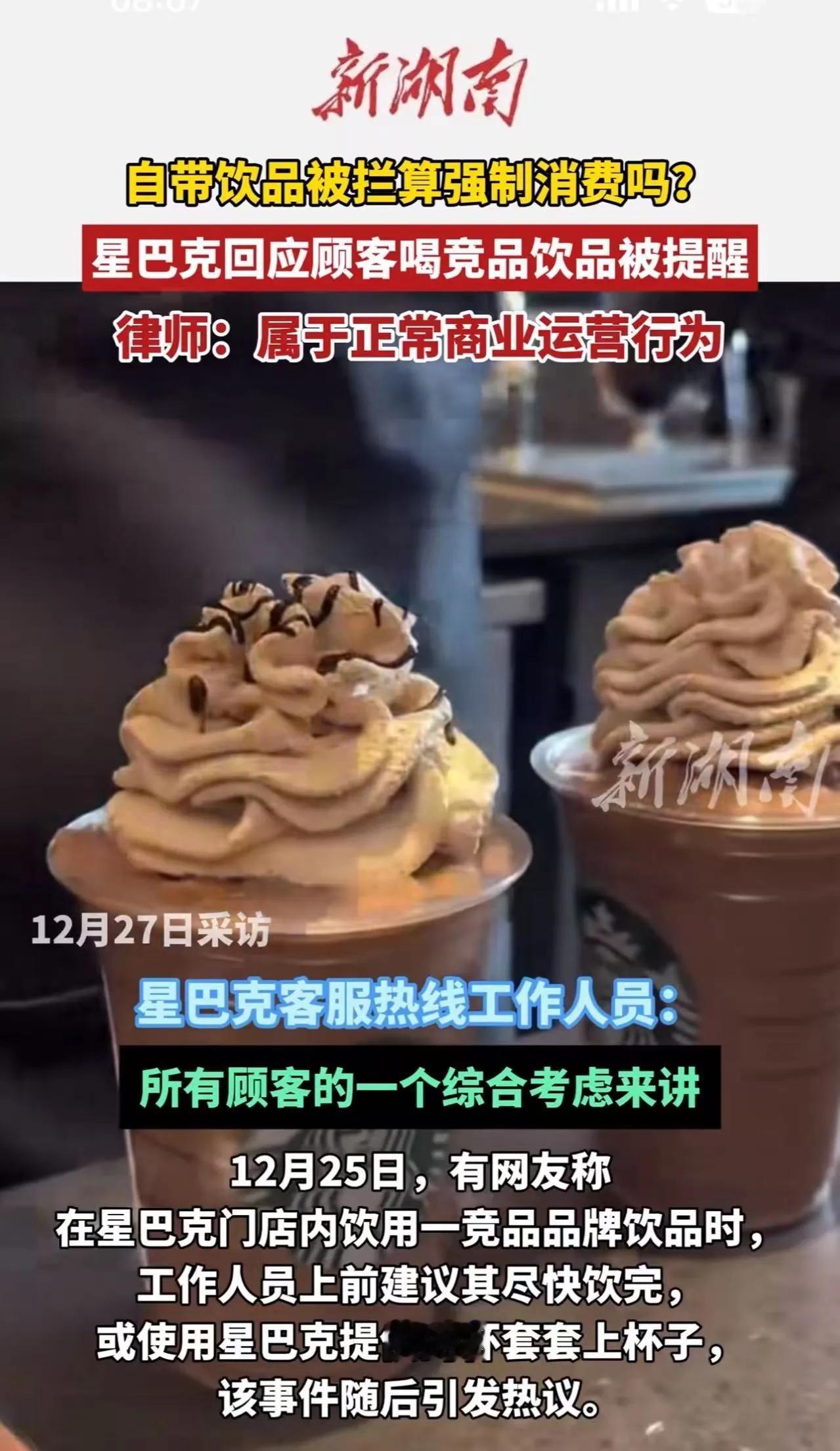 吵翻了!顾客称在星巴克店里喝其他品牌的饮品,被工作人员提醒“尽快喝完”或“套上星巴克杯套”,顾客:“被恶心到了,这是什么规定?”对此,有网友直言:这种做法确实不合适,太不地道了!也有网友说,本来就不合适,换普通店早被轰走了! 这起事件引发了不少网友的讨论,主要集中在店内管理和顾客权益两个方面。一方面,星巴克作为连锁品牌,可能出于品牌形象和店内秩序的考虑,要求顾客使用店内提供的杯套或限制外带饮品的行为,但这种做法确实容易引起顾客的不满和反感。另一方面,顾客在店内享用其他品牌的饮品,是否违反了店铺的规定或影响了店内环境,也值得商榷。 一些网友认为,店家应尊重顾客的选择和感受,避免过度限制或强制措施,以营造更友好的消费环境。而也有人指出,类似的规定在不同品牌或店铺中可能存在差异,消费者在选择时应事先了解相关规定,避免产生误会。 建议: 店家可以通过明确的标识和沟通,让顾客了解店内的相关规定,减少误会。 顾客在消费过程中也应尊重店铺的管理规定,双方共同营造和谐的消费环境。 若觉得某些规定不合理,可以通过合理渠道表达意见,促使改善。 希望未来能有更多理解和包容,让购物体验更加愉快。星巴克 星巴克咖啡杯 星巴克的冰饮