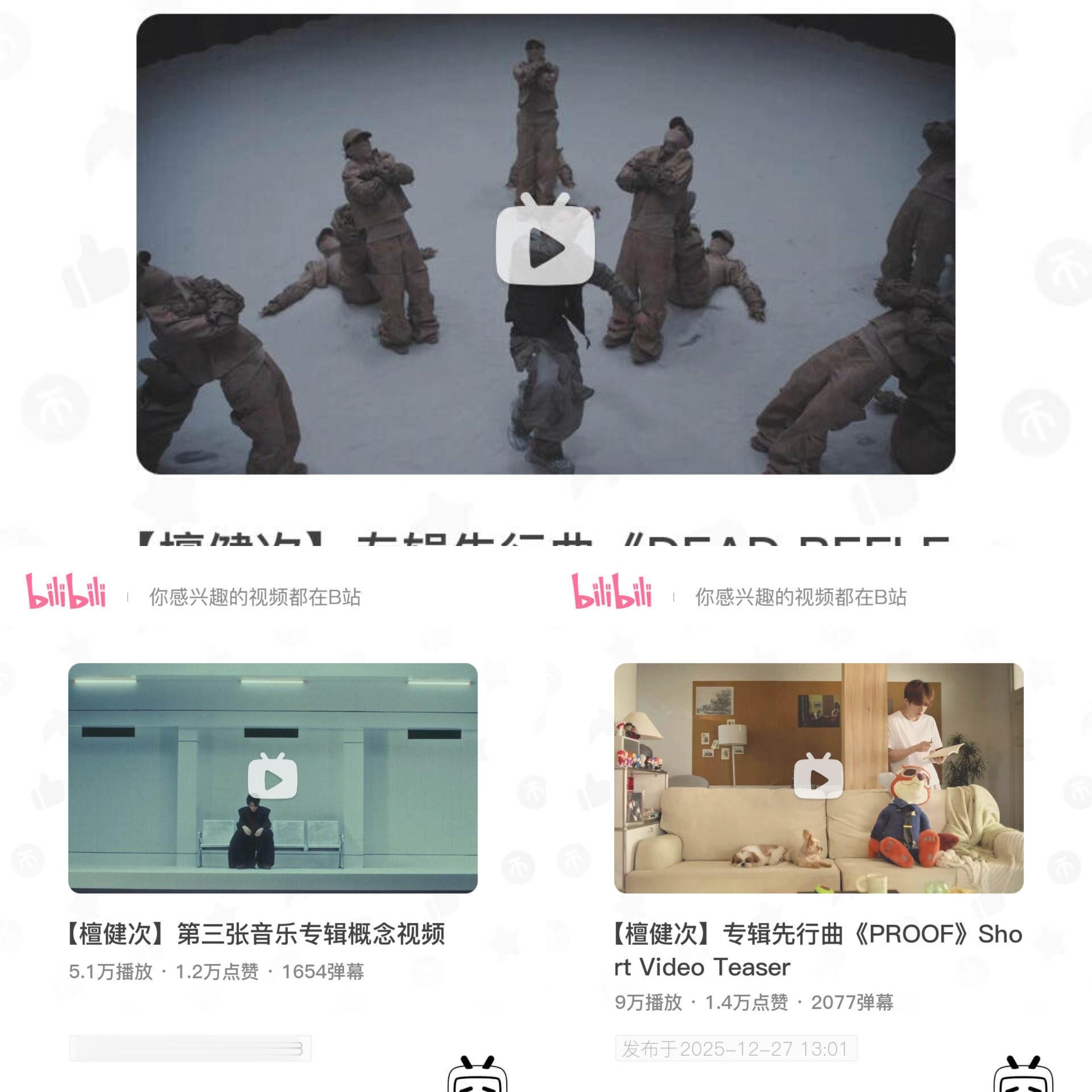 1️⃣酷狗,qq音乐预约✅ 图12️⃣个抖新歌加热✅ 图23️⃣加热b站,一键三连✅ 图3檀健次第三张音乐专辑