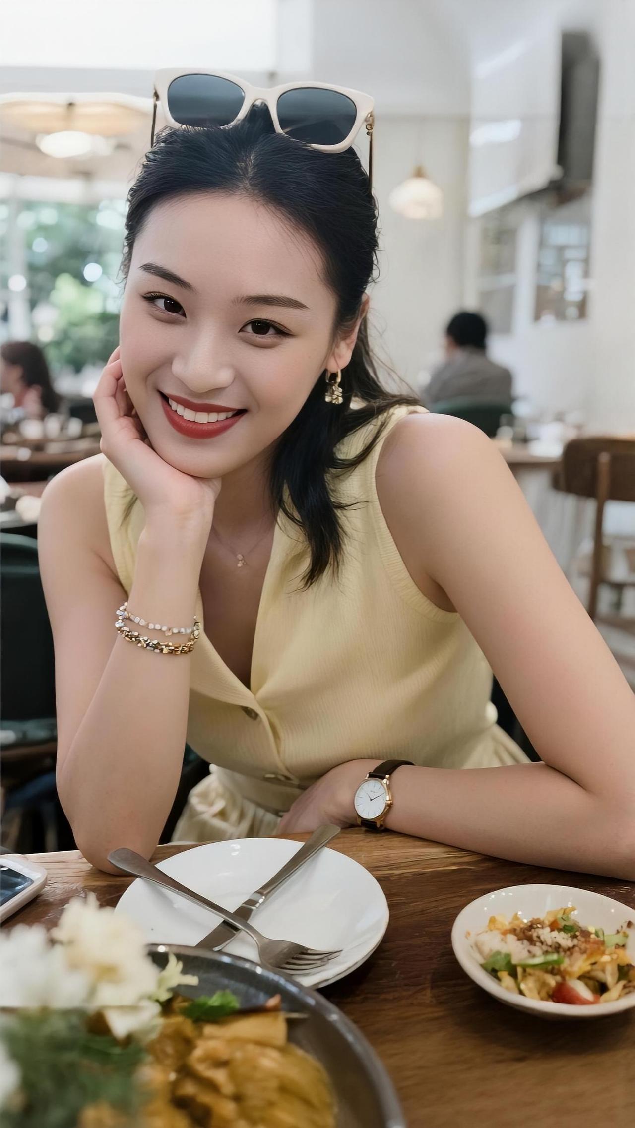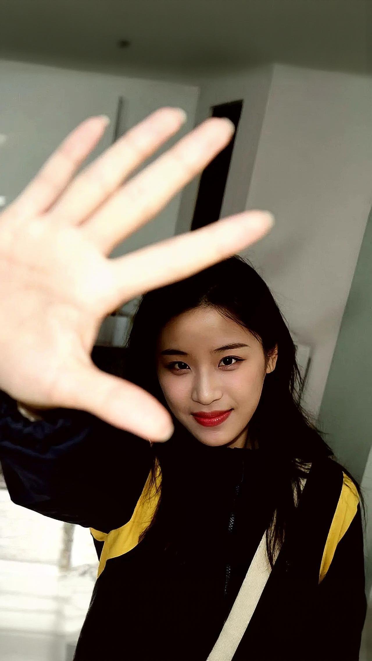 为悦己者容 素手轻拈粉扑扬, 鬓边匀色衬红妆。 眸含浅笑眉如黛, 一镜春风入鬓长。