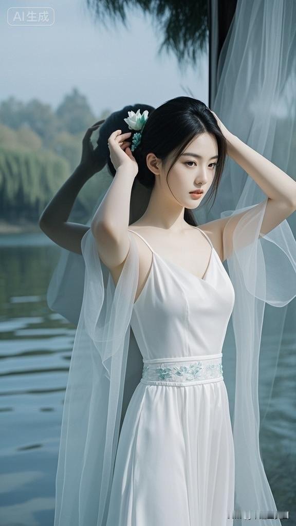 梦幻白纱裙,湖畔少女,唯美瞬间