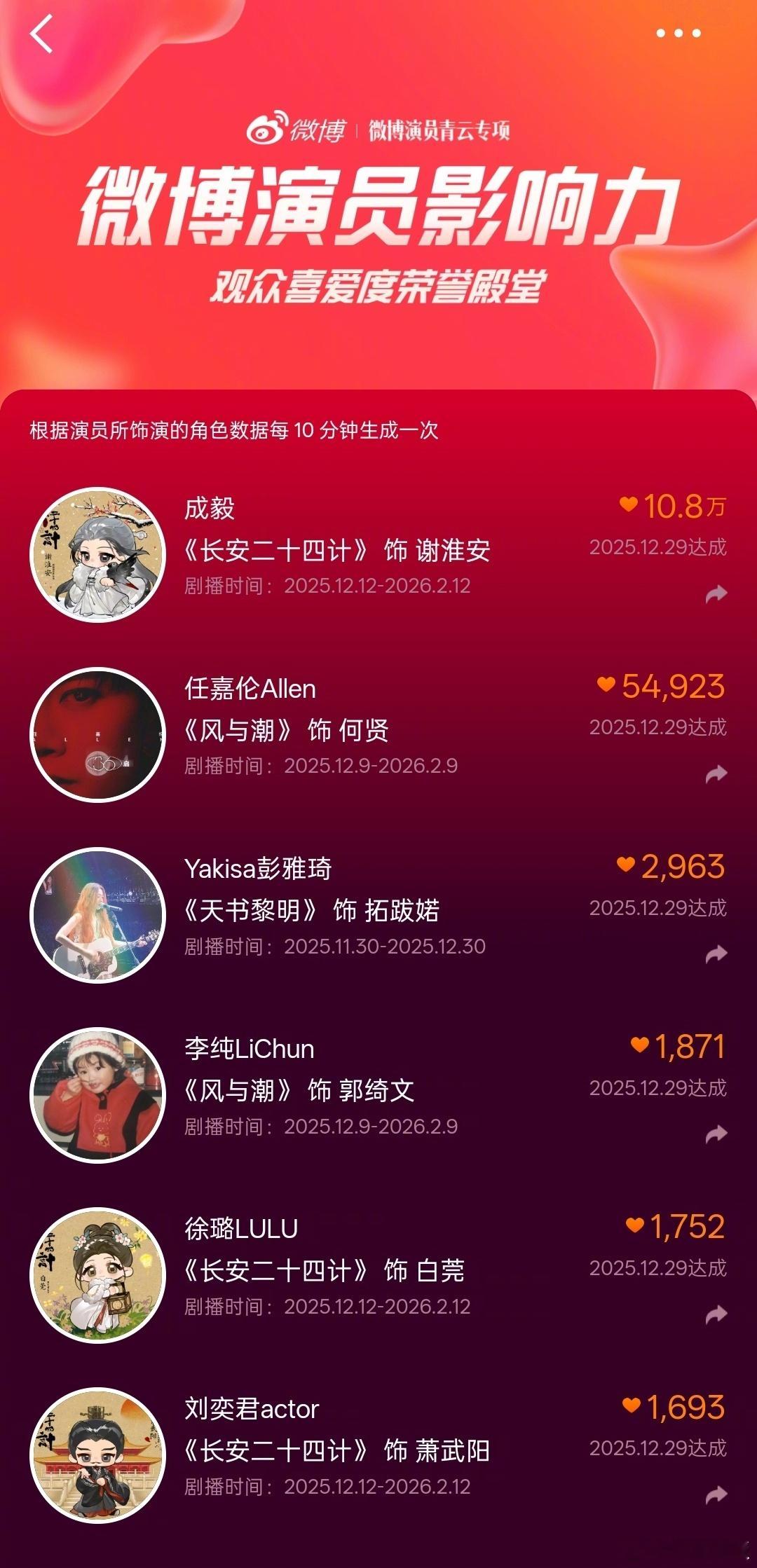 成毅首个观众喜爱度破10w演员 恭喜成为首位观众喜爱度破10w的演员!这不仅是数据的跃升,更是观众的选择。在《长安二十四计》中,成毅化身复仇谋士谢淮安,以“疯批美学”的演绎让每个眼神都成为计谋,每次呼吸都充满故事!微博演员青云专项微博演员影响力成毅