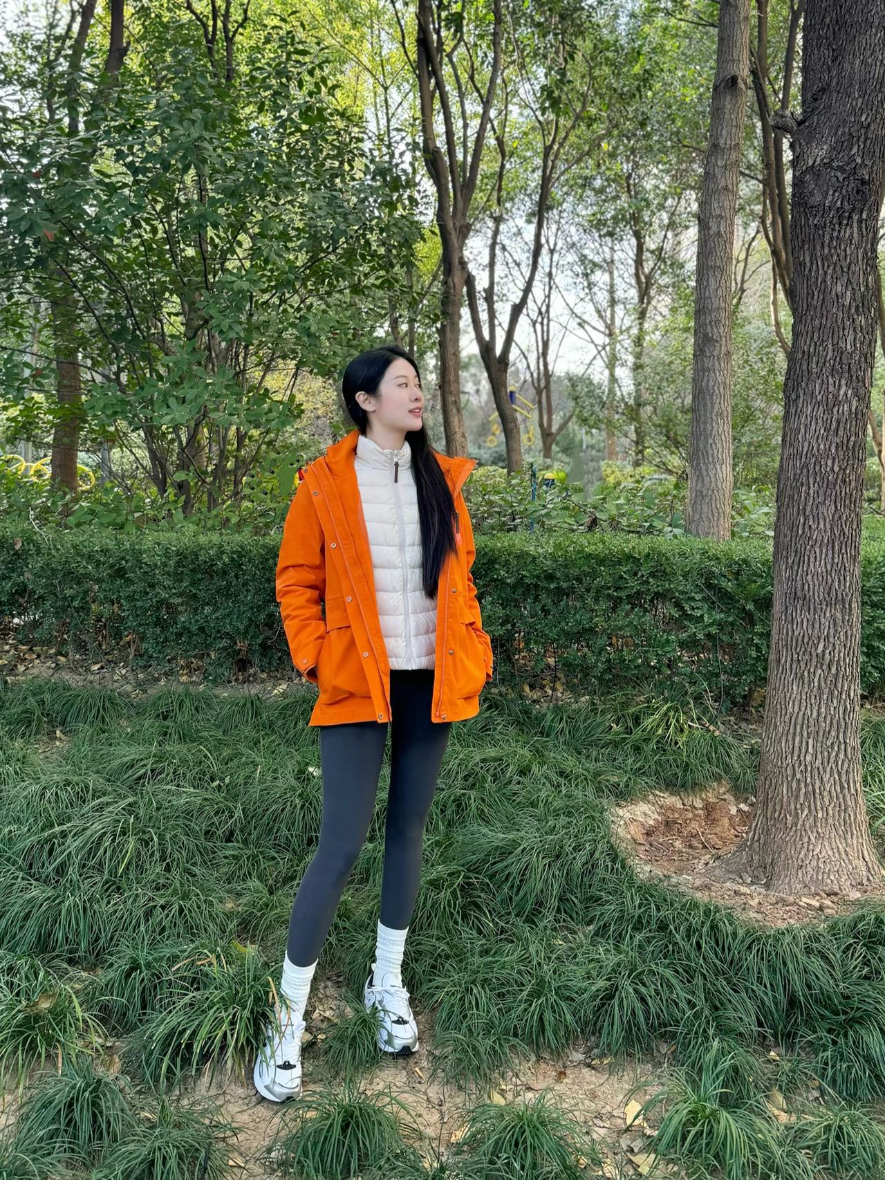 行香子·秋林闲步 橘色衣袍裹住秋,林边站着风轻柔。 手插兜儿听叶落,脚踩草屑慢悠悠。 树影筛光描鬓角,苔痕沾履惹清愁? 偏不,只觉青芜摇翠色,凉云漫卷过肩头。 抬眸时,枝桠间漏下晴光一绺, 垂首处,草叶上凝着晨露一颗。 把兜帽轻拉遮半面,任长发飘拂绕衣袖。 秋林里不必寻芳径,随心走, 看雀儿跳上枝头,听虫声藏在草沟, 人间好景寻常有,只消得,放开心,闲步游。 这秋光本就温柔,何必拘着眉头? 橙衫撞破林间绿,恰似心头燃着小火球, 暖了风,暖了路,也暖了时光悄悄流。行香子词牌 秋色漫步