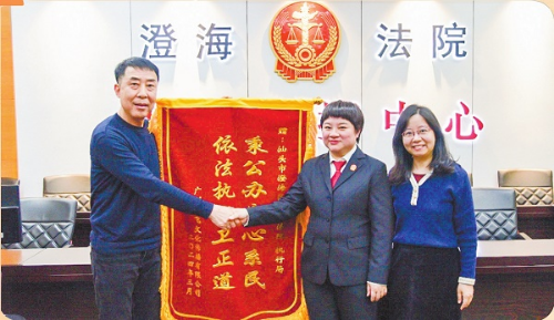 澄海区法院执结一起合同纠纷案,申请执行人送来锦旗。