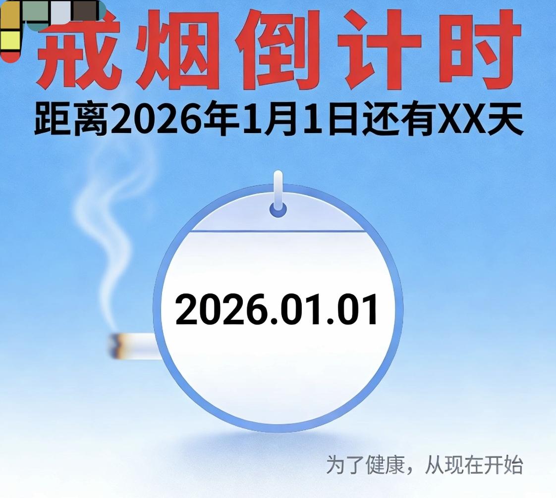 2026年1月1日开始戒烟倒计时!戒烟发不了财,但是戒烟可以健康自己! 把吸烟的钱用来提高家庭餐桌质量!一人戒烟,全家受益! 一人戒烟,全家受益! 你参与吗?欢迎加入戒烟大军中来。 一人戒烟,大家受益!你参与吗?欢迎加入健康队伍中来。 没有了烟草,照样有部队,不要歪理邪说。 如果真的战争来了,我们都是国家保护者!