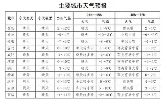 2026年1月1日:全省阴天转多云,陕北南部、关中和陕南东部有小雪或小雨。全省大部分地方日平均气温下降4~6℃。
