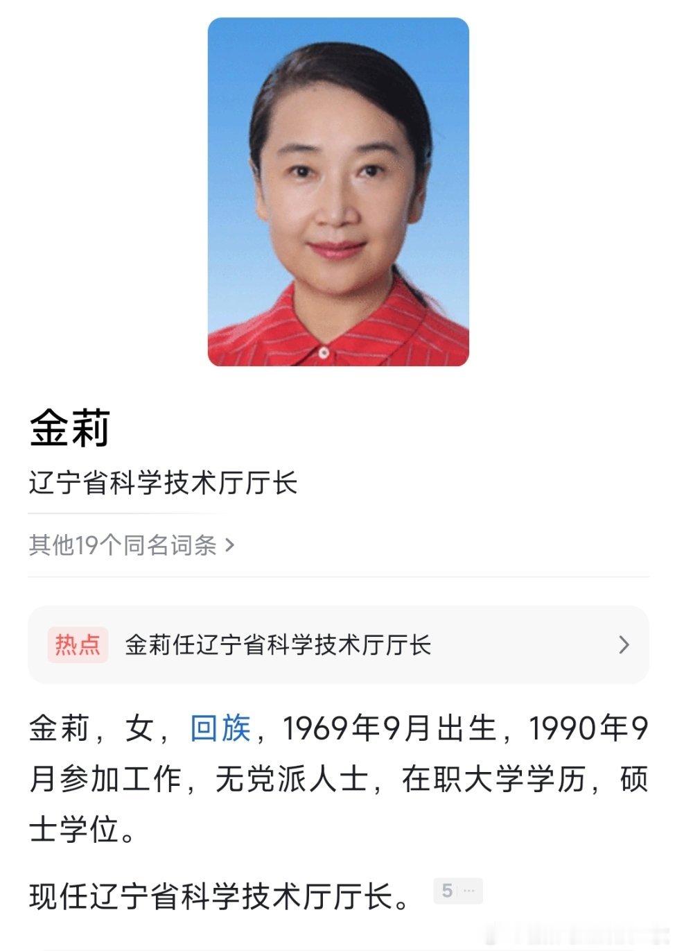 近日,辽宁省科学技术厅官网“厅领导”栏目更新显示,金莉已任省科技厅厅长,负责厅行政工作。