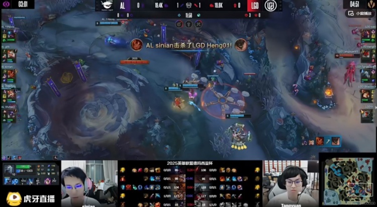 AL:上单YiNova、打野glfs、中单Sinian、下路TheHang、辅助WuNai3