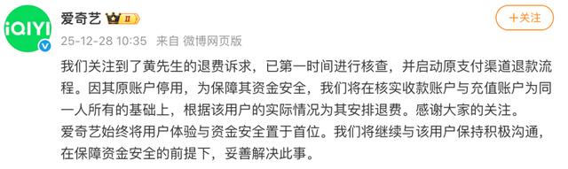 爱奇艺始终将用户体验与资金安全置于首位。我们将继续与该用户保持积极沟通,在保障资金安全的前提下,妥善解决此事。