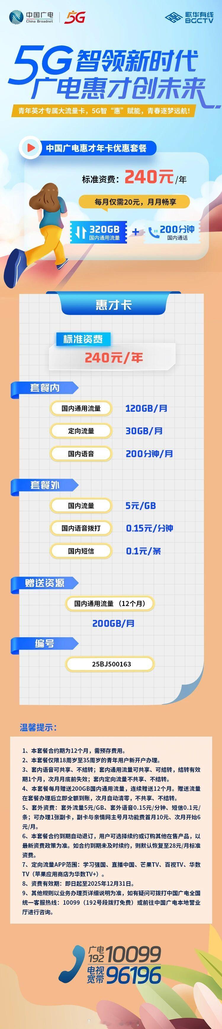 歌华有线真是广电体系内的翘楚了……北京的广电 5G 不仅规格高信号又好也没有任何的降速的问题热门区域甚至可以飚到 1.5-2Gbps 以上的下行,别的省分还在因为移动结算问题降速砍套餐的时候,歌华居然又上了一个 18-35 岁的专属青年用户套餐,240 一年(变相就是 20 块钱一个月),每个月流量高达 320G(120G+赠送 200G),还有 200 分钟通话时长。广电系的应用(学习强国 / 直播中国 / 芒果TV / 百视TV / 华数TV )再送 30G 免流。但这个套餐不是网上随便办的(应该是规避其它本身和当地移动有结算问题的省份用户随意跨省办理),需要到歌华有线北京的线下营业厅实名制办理,然后有一年的合约期(也就是 240 年费)。如果家里有歌华的有线电视、平时又不怎么出北京(或者去的是上海这种地方),这卡对在北京的人来说的确是挺好的。 你看,只要不欠移动的结算费用,怎么搞都可以。你欠了钱还想让人家给你提供全额服务……共享共建协议里都写得明明白白『约定广电使用移动 n41 频段按照使用量给移动结算』,你钱都没结清,还想要这要那,想屁吃呢……[