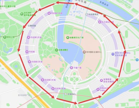 同一时段,根据郑东新区CBD区域的交通流量,适时对中州大道(不含)以东,黄河东路和黄河南路(不含)以南、以西,金水东路(不含)以北的合围区域采取车辆“只出不进”的疏导措施。