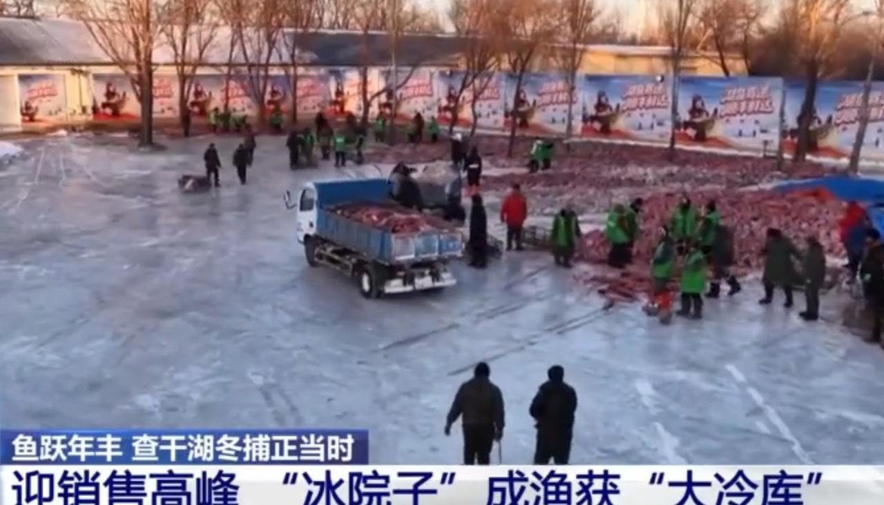 查干湖的“冰院子”里,红彤彤的渔获铺满雪地,成了北国冬日最亮眼的底色。冬捕的丰收让这里化身渔获的“大冷库”,工作人员们穿梭其间,忙着将鲜鱼分拣、装车,蓝色货车旁人影攒动,一派热火朝天的忙碌景象。这份从冰湖捞出的鲜美,正借着冬日的低温被妥善保存,即将送往各地的餐桌,让查干湖的冬捕滋味,成为千家万户冬日里的温暖馈赠。