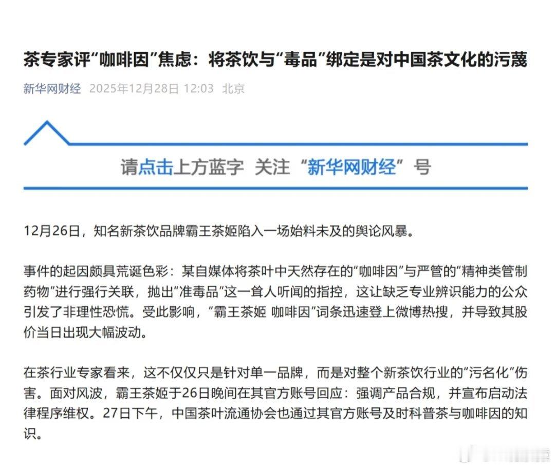 上海禁毒回应霸王茶姬咖啡因争议上海禁毒,新华社,茶叶研究教授都回应了,不要抛开剂