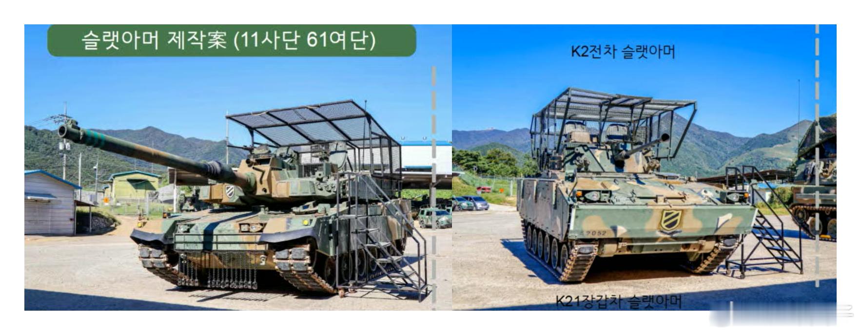 韩国K2坦克和K21步战车测试的防无人机罩子