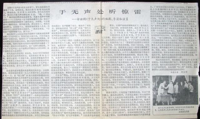 1978年10月12日,《文汇报》半个版面刊载通讯《于无声处听惊雷》,在全国报刊上第一个报道话剧《于无声处》;