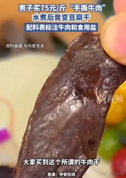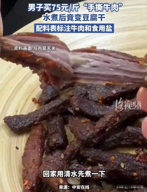湖南一对夫妻逛展会时,因爱吃牛肉干,看到售价75元一斤的牛肉干,虽然价格不菲,但还是买了一些回家尝鲜。可没想到,为了让妻子不吃辣,丈夫特意将牛肉干焯水去辣,结果竟发现“里面居然大多是豆腐干”!二人惊讶不已,更令人震惊的是,配料表上仅写着牛肉干和盐,怀疑商家用麻辣味道掩盖了真相。丈夫忍不住拍视频吐槽,没想到这段视频引发了网友们的激烈讨论:有人认为价格低肯定有猫腻,也有人质疑视频真伪,毕竟这是袋装正规流通产品,不应存在“掺假”。 这到底是偶发的质量问题,还是商家为了利润铤而走险?更深层次的疑问是,我们普通消费者如何保护好自己的权益,不被表面的“华丽包装”所蒙蔽?面对市场上琳琅满目的食品,真假掺杂、良莠不齐,是不少消费者共同面对的尴尬局面。 不得不说,这对夫妻的遭遇戳中了大众的痛点——“贵的东西未必真好”,这一认知让很多消费者既期待又防备。其实从人性的角度看,谁不想花钱买到物有所值?但现实往往是,面对利益驱使,有些商家会踩线试探,而监管体系的漏洞,也给了这些“暗箱操作”滋生的土壤。 网友们热议的背后,是对诚信缺失的愤慨与对公平交易的渴望。更有网友反问:“这么贵的牛肉干都能掺豆腐干,那些低价牛肉干还能相信吗?”这不仅是食品安全问题,更是社会信用体系的缩影。 其实,我们每个人都有权利且应当去质疑、去监督,不被“表面光鲜”迷惑。正如那句老话:“消费者就是市场的主人。”只有大众的声音足够响亮,才能逼迫商家提升品质,监管机关加强管理。否则,类似事件还会一再发生,伤害的依然是信任的基石。 牛肉干 牛肉干小吃