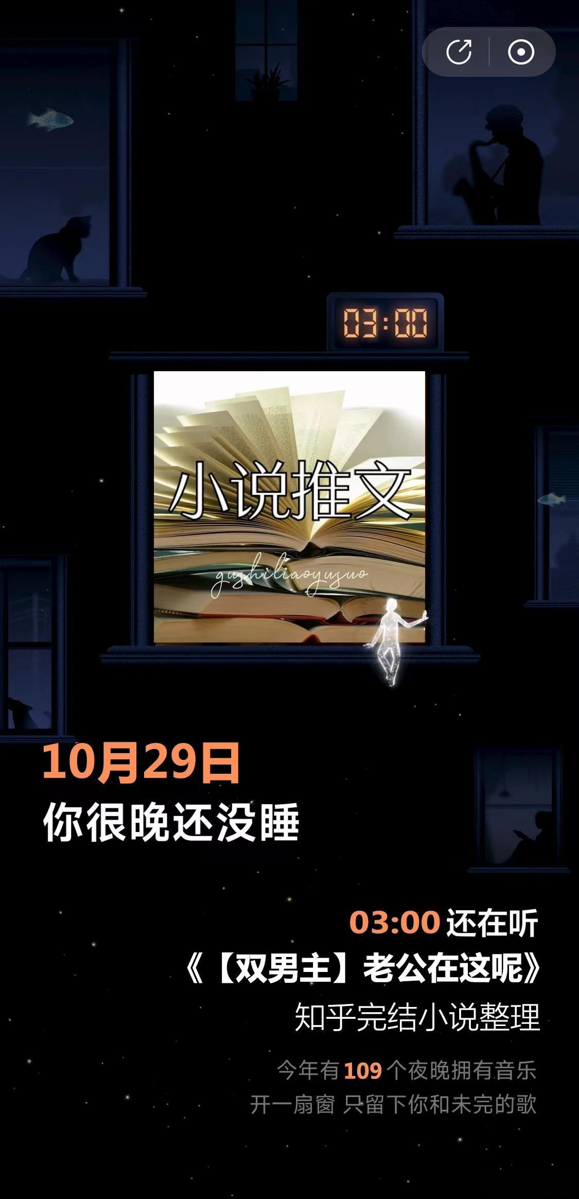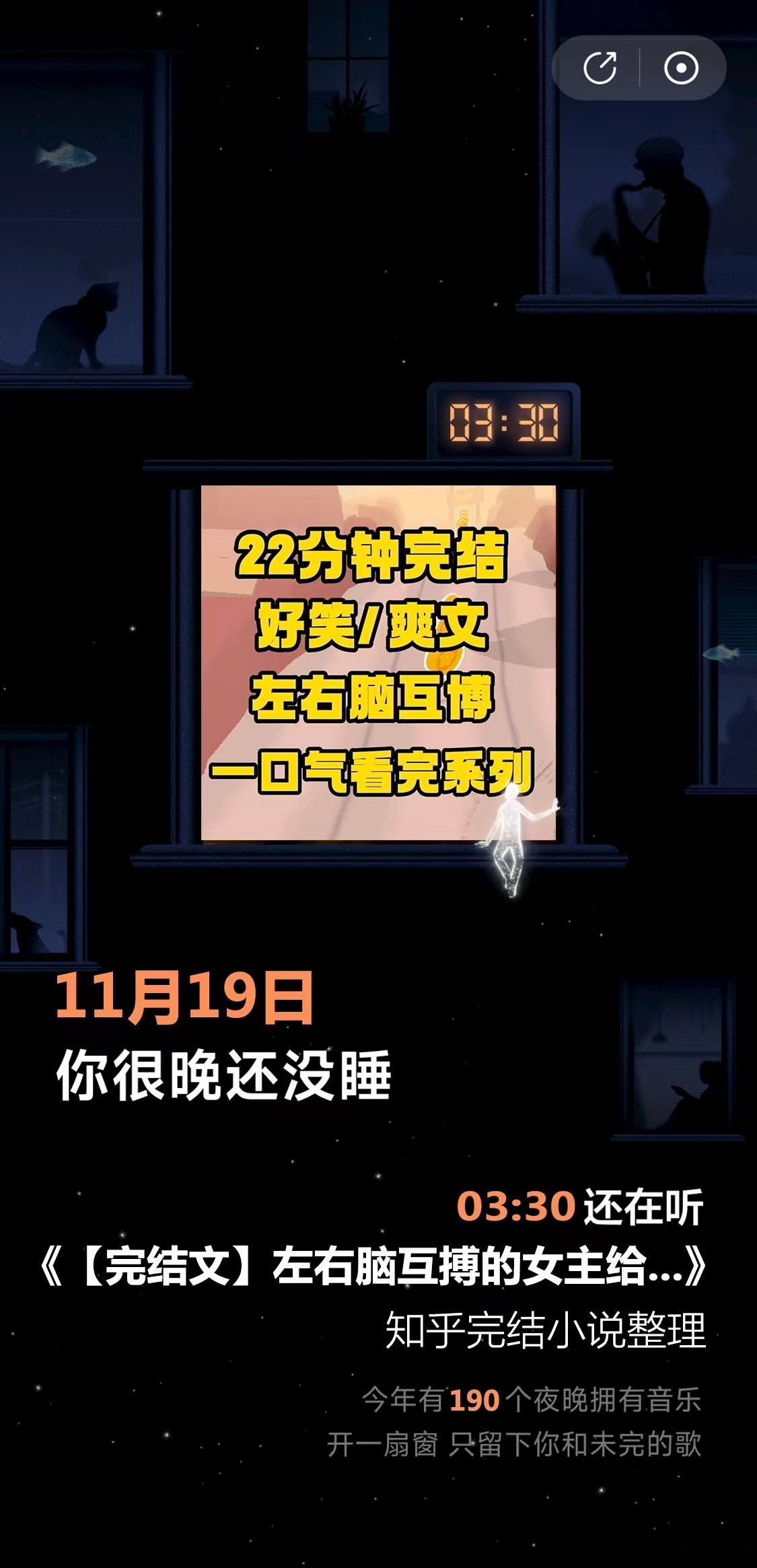 半夜听歌和听小说的一个都别想睡 咱就是说,半夜睡不着其实也可以硬睡,非要听点儿什么结果越听越精神,一年比一年晚睡大概是因为因为今年开始听离谱小说了大眼杯表彰小会