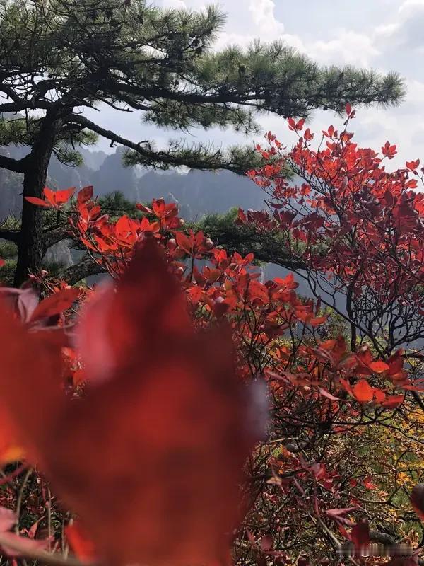 上联:千山红叶燃诗意; 下联:万岭青岚勾画情。