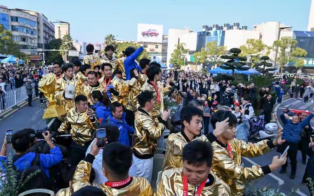 永州队在刚刚结束的湖南省足球联赛夺冠后,回到永州接受了花车巡游的礼遇。