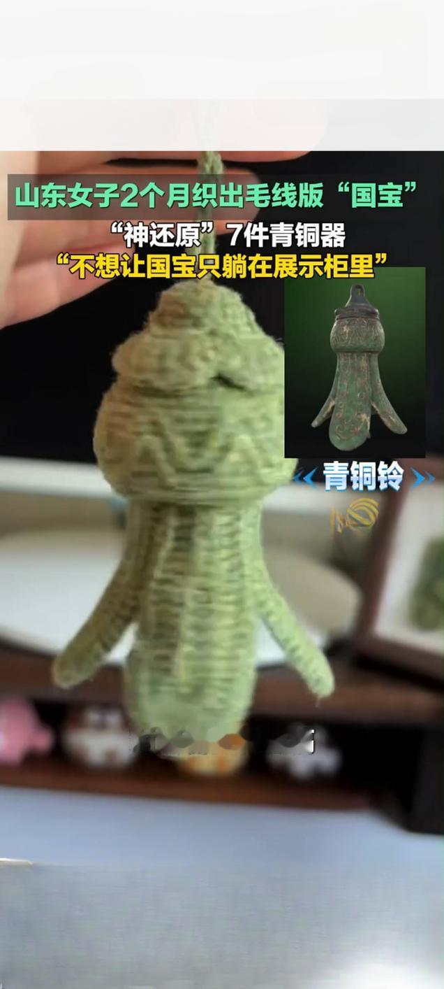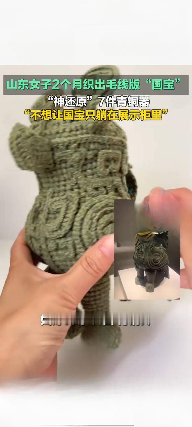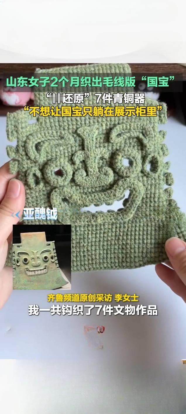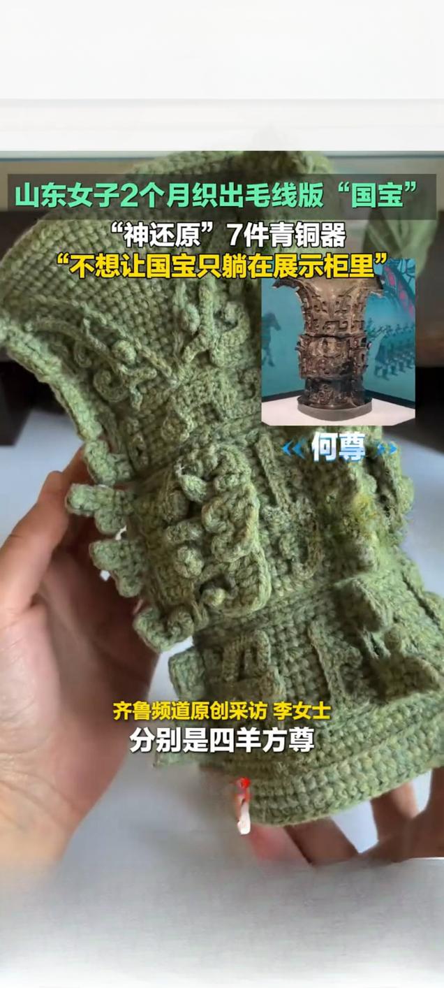 济南女子2个月织出7件毛线版“国宝” 神还原青铜器引热议 12月29日,山东济南一位手工艺人凭借精湛技艺走红快手,她耗时2个月精心编织的7件毛线版“国宝”青铜器,因造型逼真、细节考究引发网友广泛关注,相关作品播放量已达1.8万次。 据悉,这位女子出于对传统文化的热爱,希望让陈列在博物馆展示柜中的国宝“活起来”,便萌生了用毛线复刻青铜器的想法。从构思设计到选材编织,她全程亲力亲为,精准还原了青铜器的独特造型与纹饰细节,每件作品都尽显匠心。无论是器物的比例拿捏,还是纹理的细腻呈现,都展现出极高的手工水准,让网友纷纷赞叹“巧手神还原”“这才是传统文化的创意传承”。 该作品在快手平台发布后,迅速收获众多好评。网友“凤舞九天0742”留言“好厉害”,网友“哥我郭”调侃“我们的都是树叉子”,言语间满是认可;还有网友直言“上交吧”,表达了对作品的高度赞赏。 用毛线编织的方式复刻国宝,不仅为传统文化注入了生活气息与创意活力,也让更多人感受到了文物之美与手工之趣。这种创新传承方式,既拉近了大众与传统文化的距离,也为非遗传承与文化传播提供了新思路。毛线手作美学 非遗传承 心灵手巧