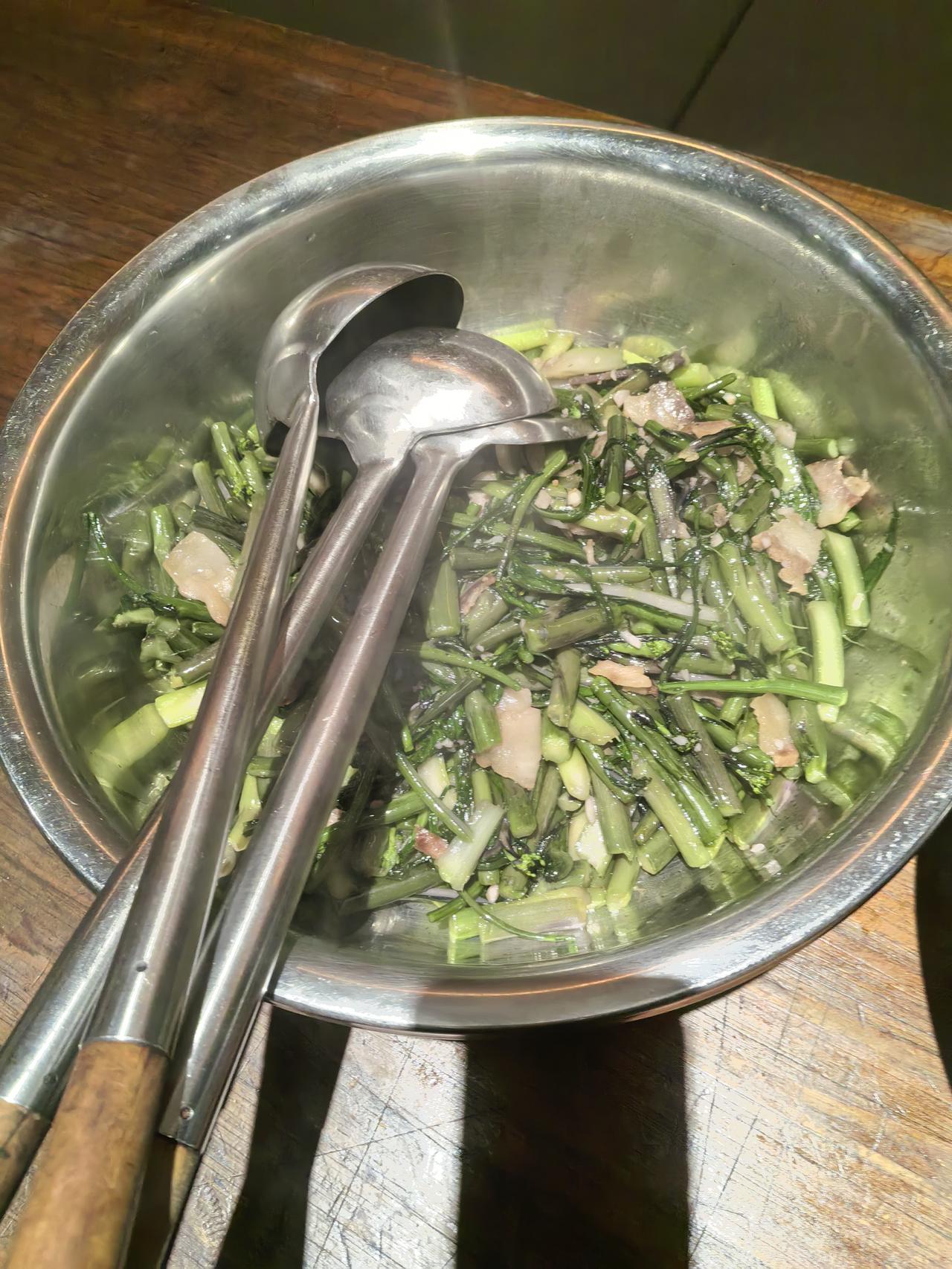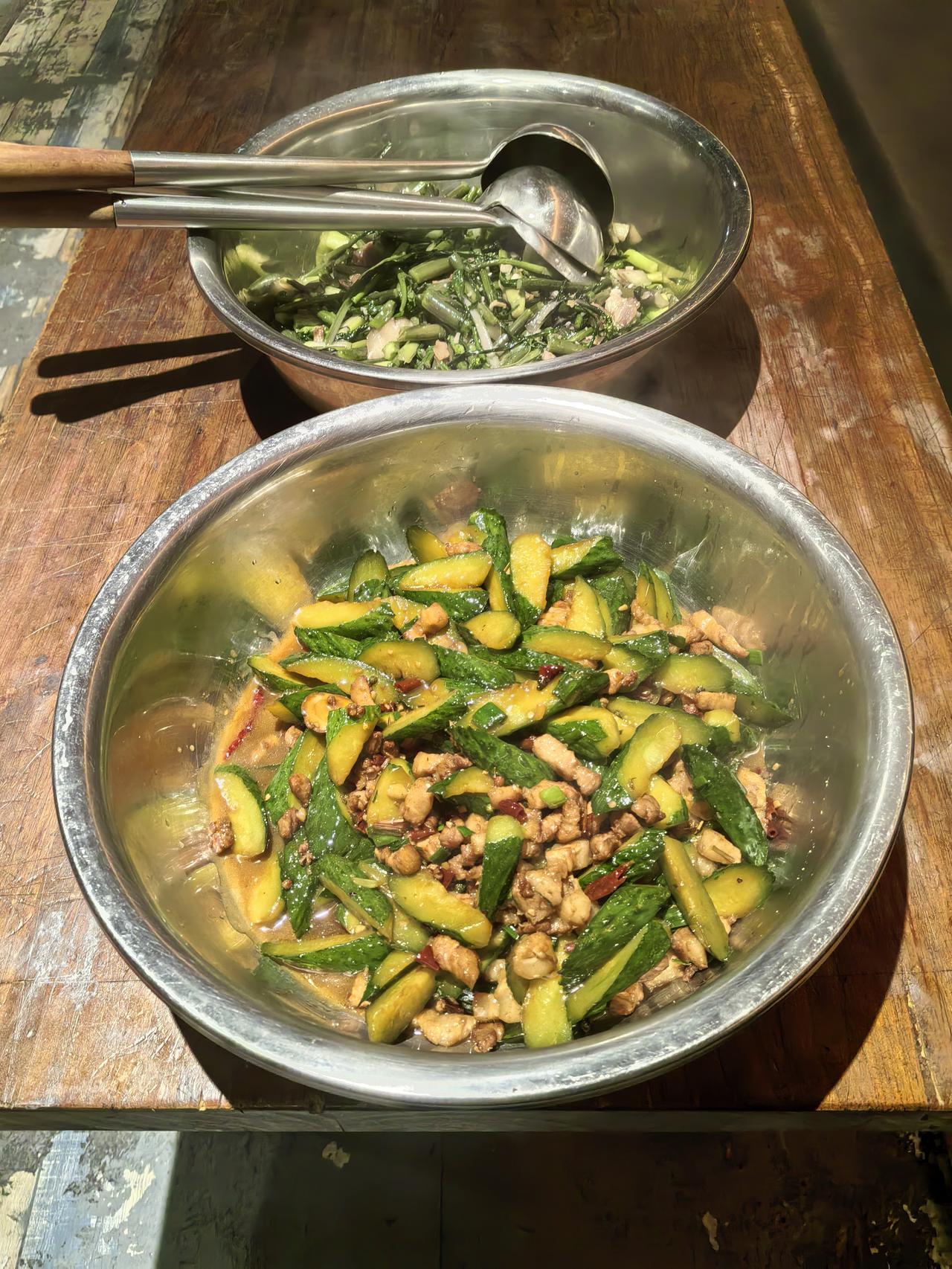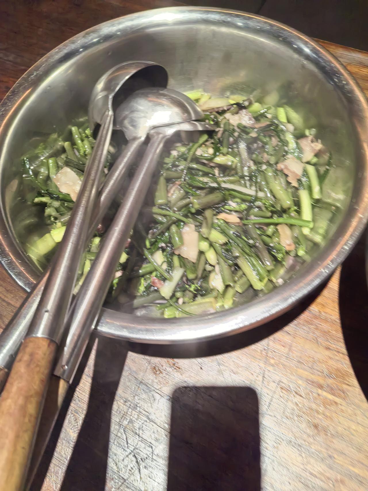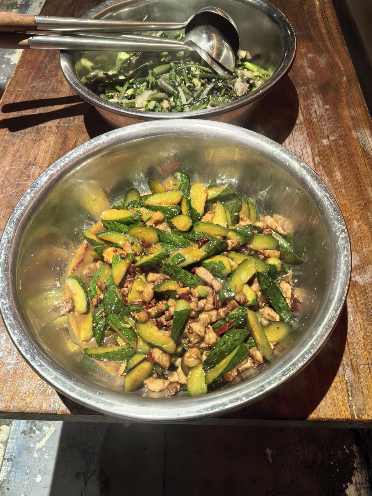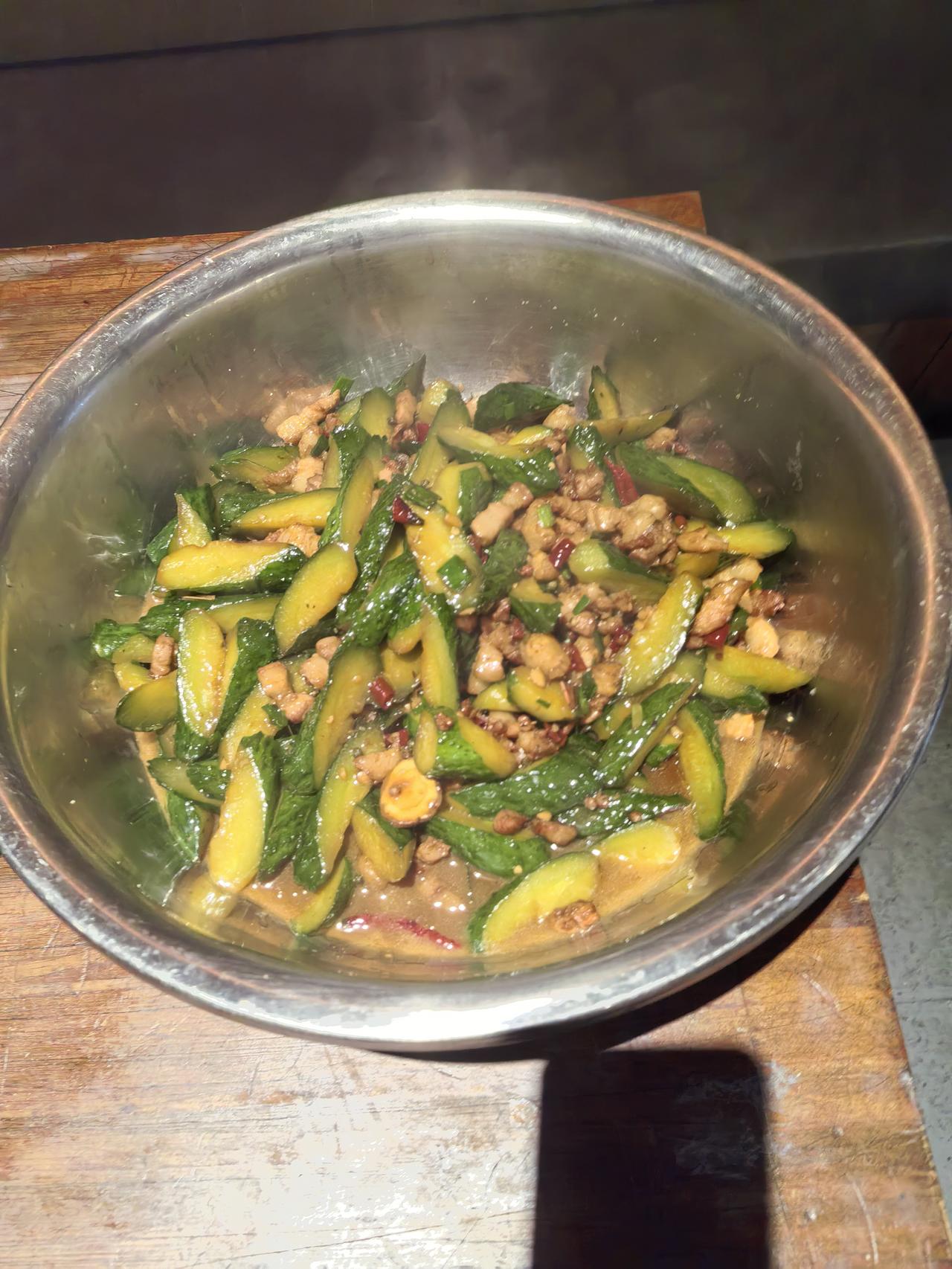 打工人的工作餐还在纠结外卖?咱后厨人的午餐,直接把鲜爽和温暖拉满!今天的菜单——黄瓜烧肉、腊肉炒红菜苔、排骨藕汤,道道都是用锅气炖出来的幸福感。 先炫这盘黄瓜烧肉!选肥瘦相间的五花肉煸出透亮油脂,酱香裹着肉香直钻鼻腔。滚刀块的黄瓜吸饱肉汁,脆嫩中带着一丝清甜,一点不腻口,筷子根本停不下来。 腊肉炒红菜苔绝对是时令C位!自家腌的腊肉蒸得透亮,下锅煸炒出独特腊香,再配上掐头去尾的红菜苔大火快炒。红菜苔脆生生的,嚼着满是清甜,和腊肉的咸香碰撞,一口下去全是地道的家常滋味。 压轴的排骨藕汤更是暖心暖胃!排骨炖到轻轻一抿就脱骨,粉糯的莲藕吸足了肉汤的鲜,咬开藕孔里全是灌满的汤汁,鲜掉眉毛!喝上一碗,后厨忙活一上午的疲惫瞬间消散。 谁说工作餐只能凑活?厨师的工作餐,就是把简单食材做成最熨帖的味道,这才是人间烟火的顶配!