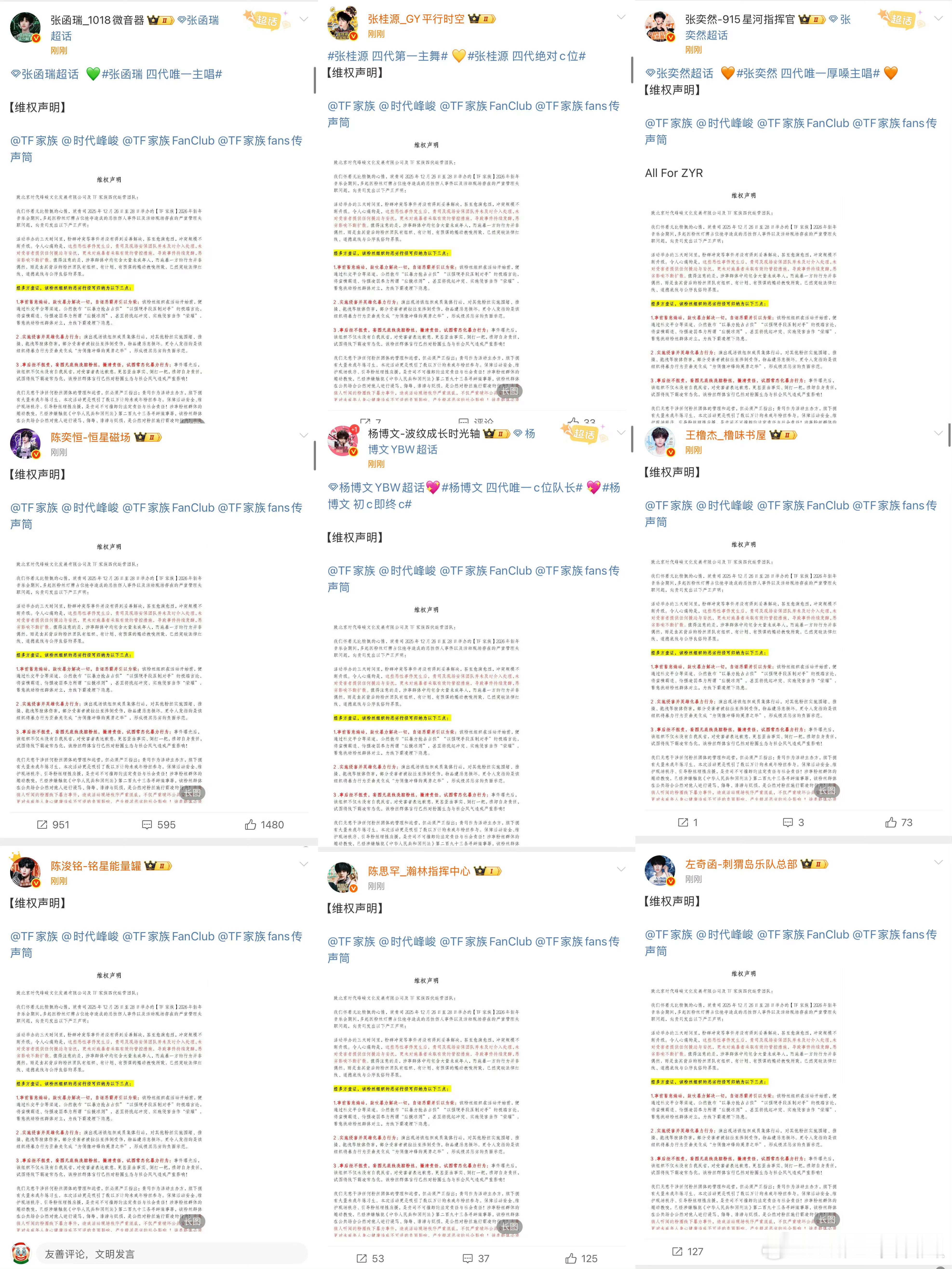 四代 维权tf家族四代联合维权lmp,问时代峰峻要说法了9家张桂源 陈奕恒 杨博文 王橹杰 左奇函 陈思罕 张函瑞 张奕然 陈浚铭(排名无先后),支持维权橹穆批追星无下限