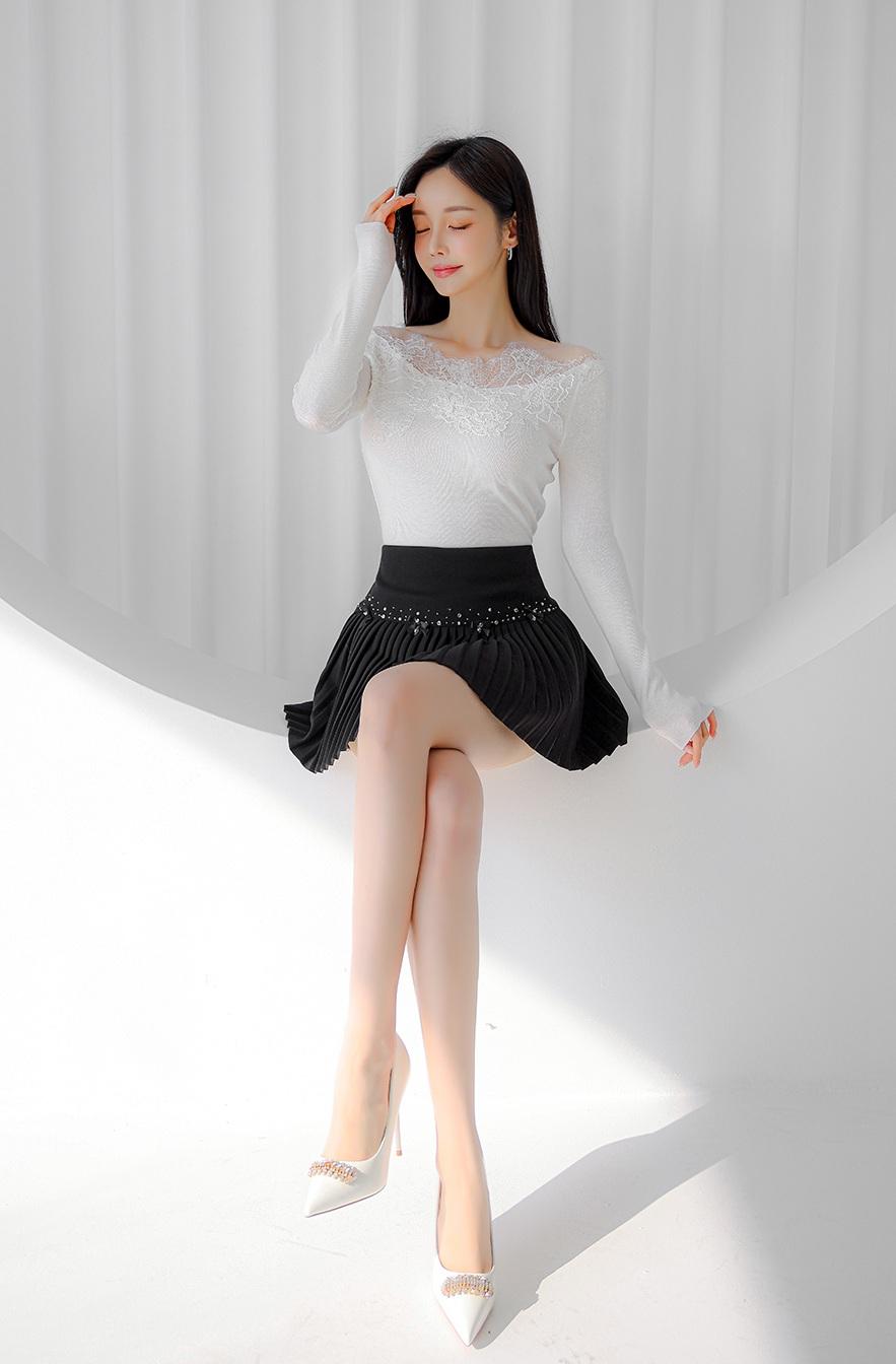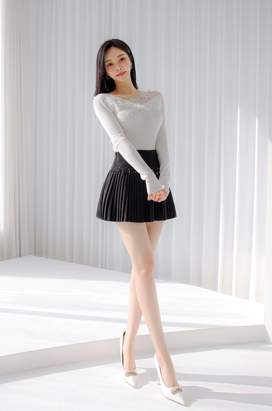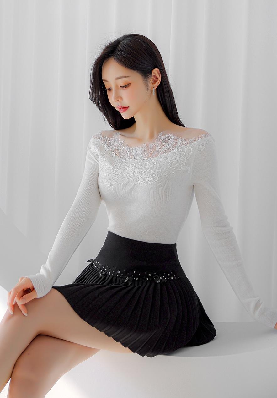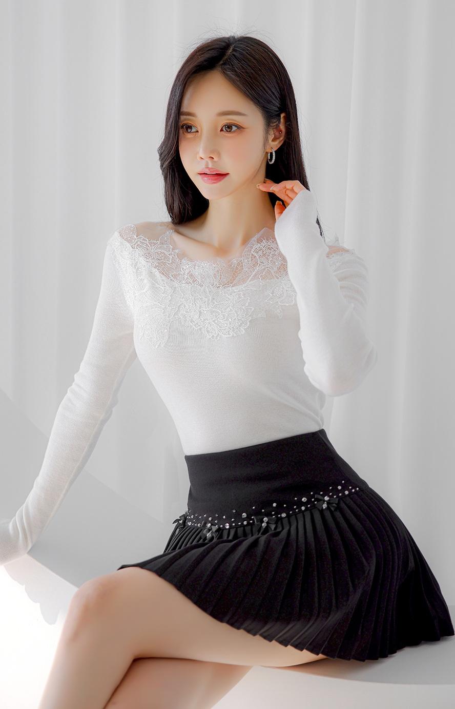 孙允珠身着蕾丝长袖上衣搭配黑色百褶裙,将温柔气质展现得淋漓尽致!那件蕾丝长袖上衣