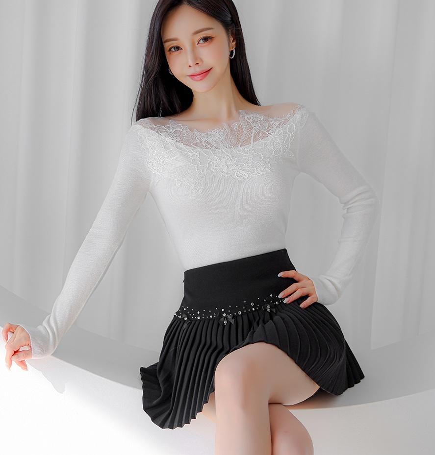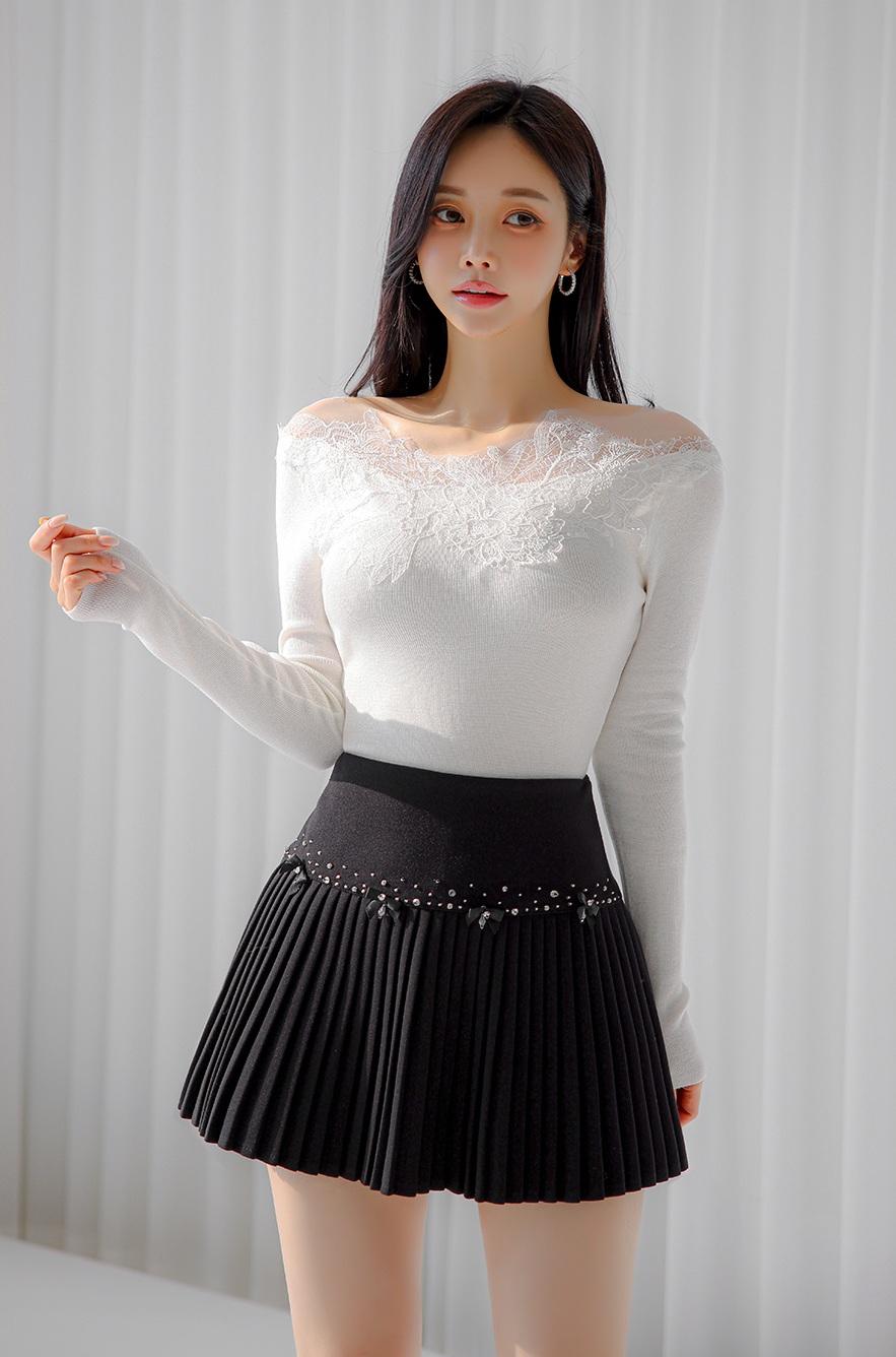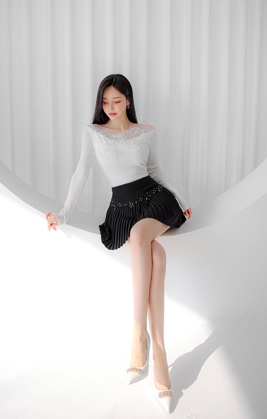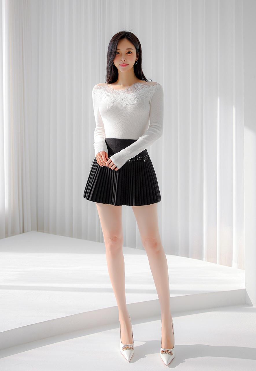 孙允珠身着蕾丝长袖上衣搭配黑色百褶裙,将温柔气质展现得淋漓尽致!那件蕾丝长袖上衣
