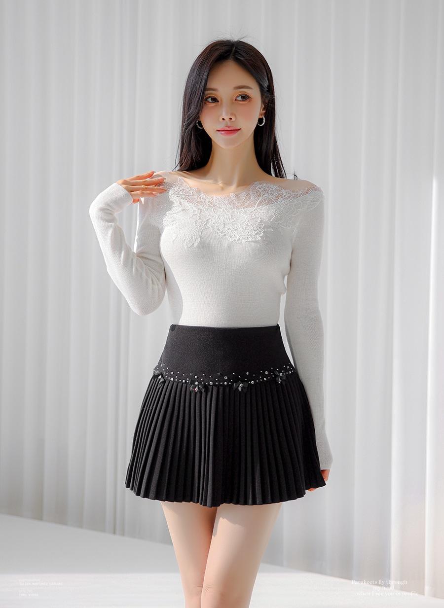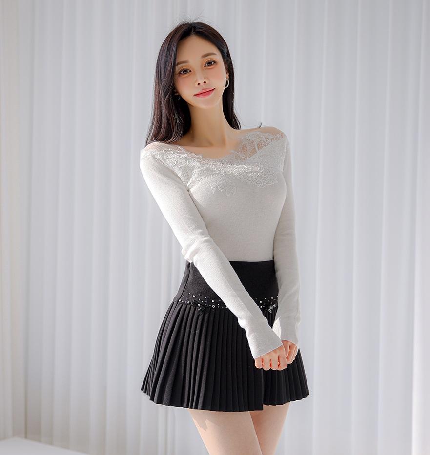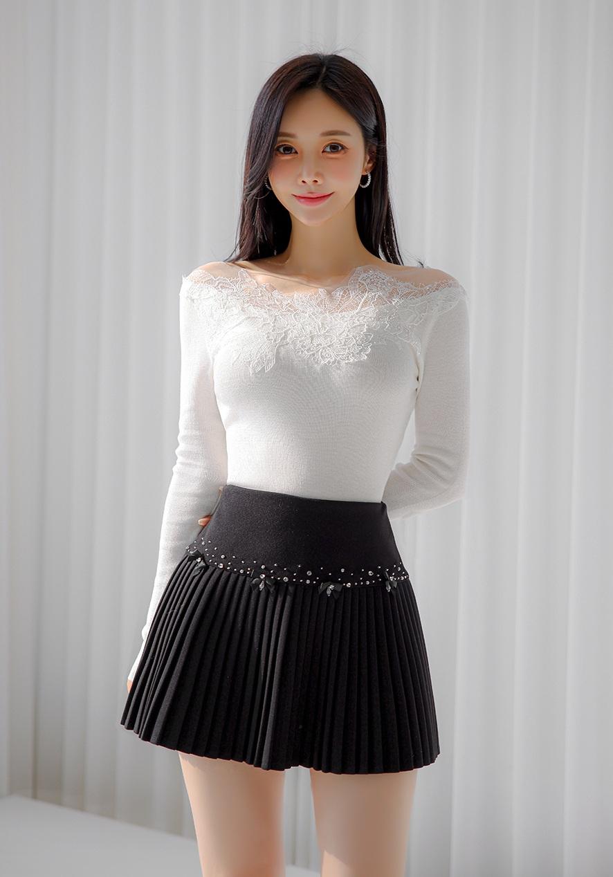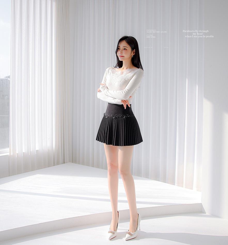 孙允珠身着蕾丝长袖上衣搭配黑色百褶裙,将温柔气质展现得淋漓尽致!那件蕾丝长袖上衣