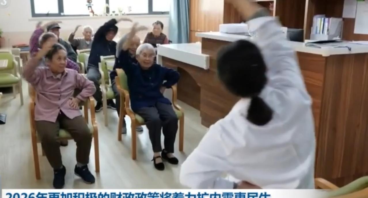 2026年积极财政政策锚定扩内需、惠民生发力,画面里重大基建项目工地机器轰鸣、建设正酣,养老服务中心内老人跟着指导做康复操,笑意满盈;工厂车间里工人专注调试设备,产业生产热火朝天。政策从基建托底、民生保障到产业升级多维度施策,让发展红利既筑牢经济底盘,又真切惠及百姓生活。