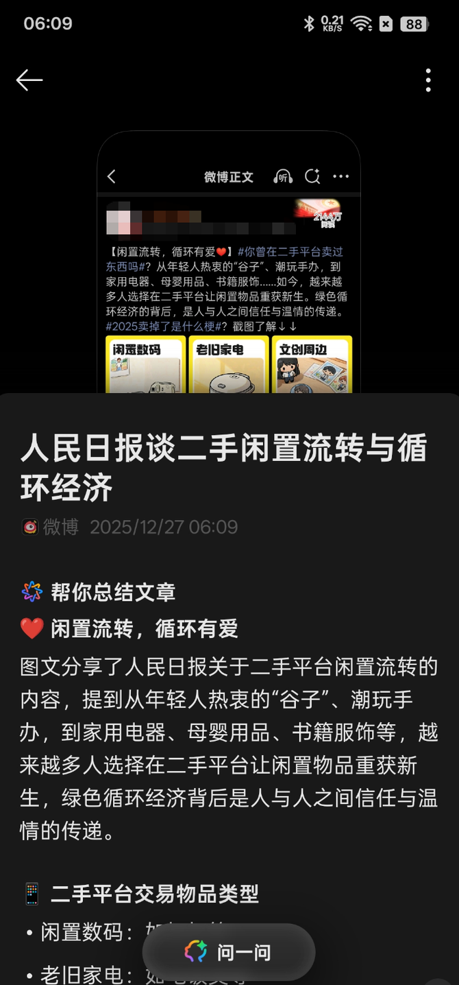 在日常生活中,如果你看到一个有意思的文章,想总结下来,传统的方式下是需要复制文章,粘贴到手机的AI助手然后再输入指令让它总结,在好几个APP内来回切换,非常的麻烦。