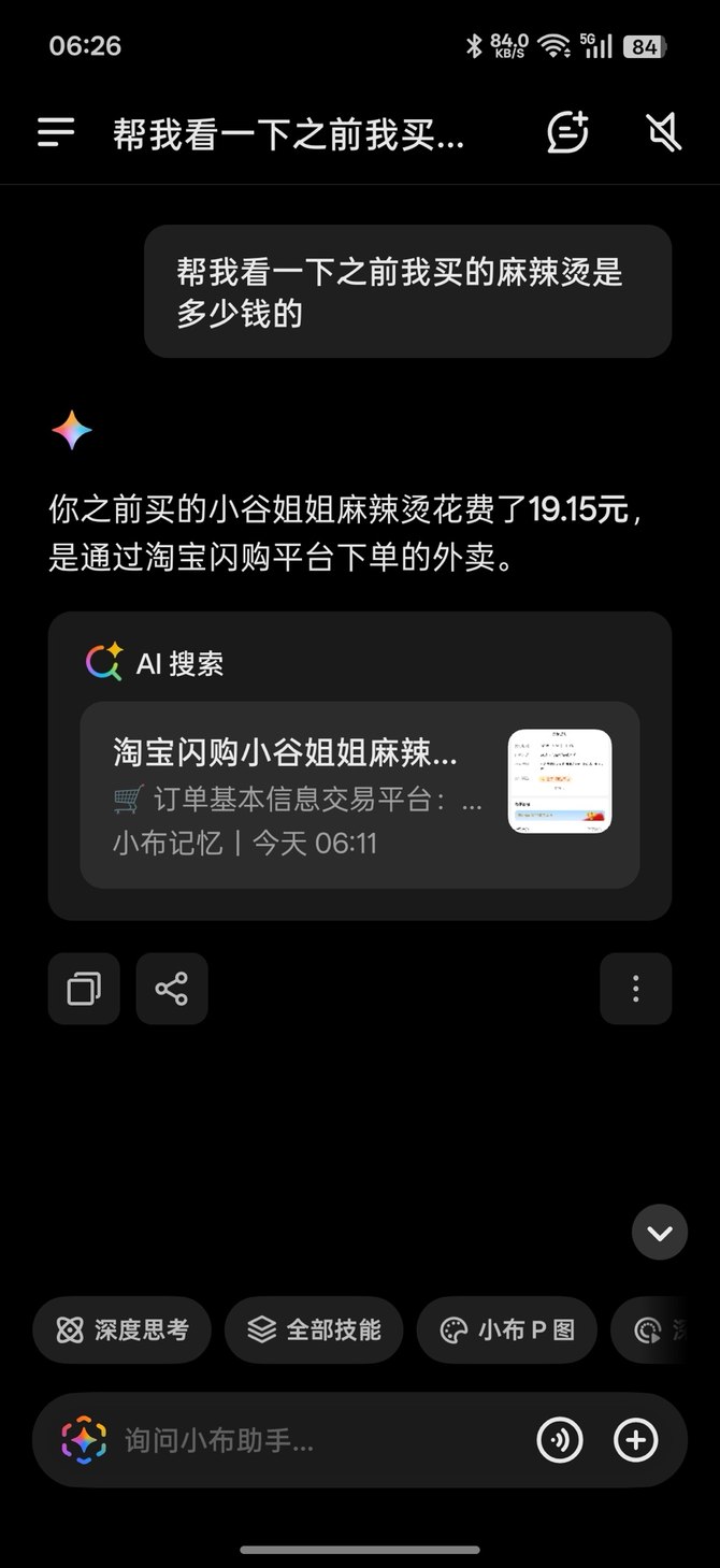 后续无论是查找某一次支付记录、回顾看过的攻略内容,还是调用此前的灵感记录,都可以通过与小布的自然语言交互来完成。这种体验更像是为系统“外挂”了一层长期记忆能力,让信息不再只是短暂停留在屏幕上。
