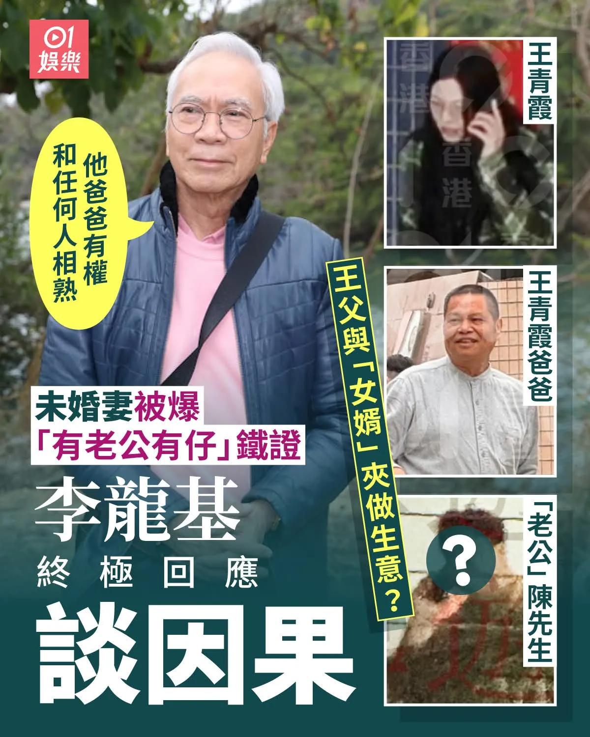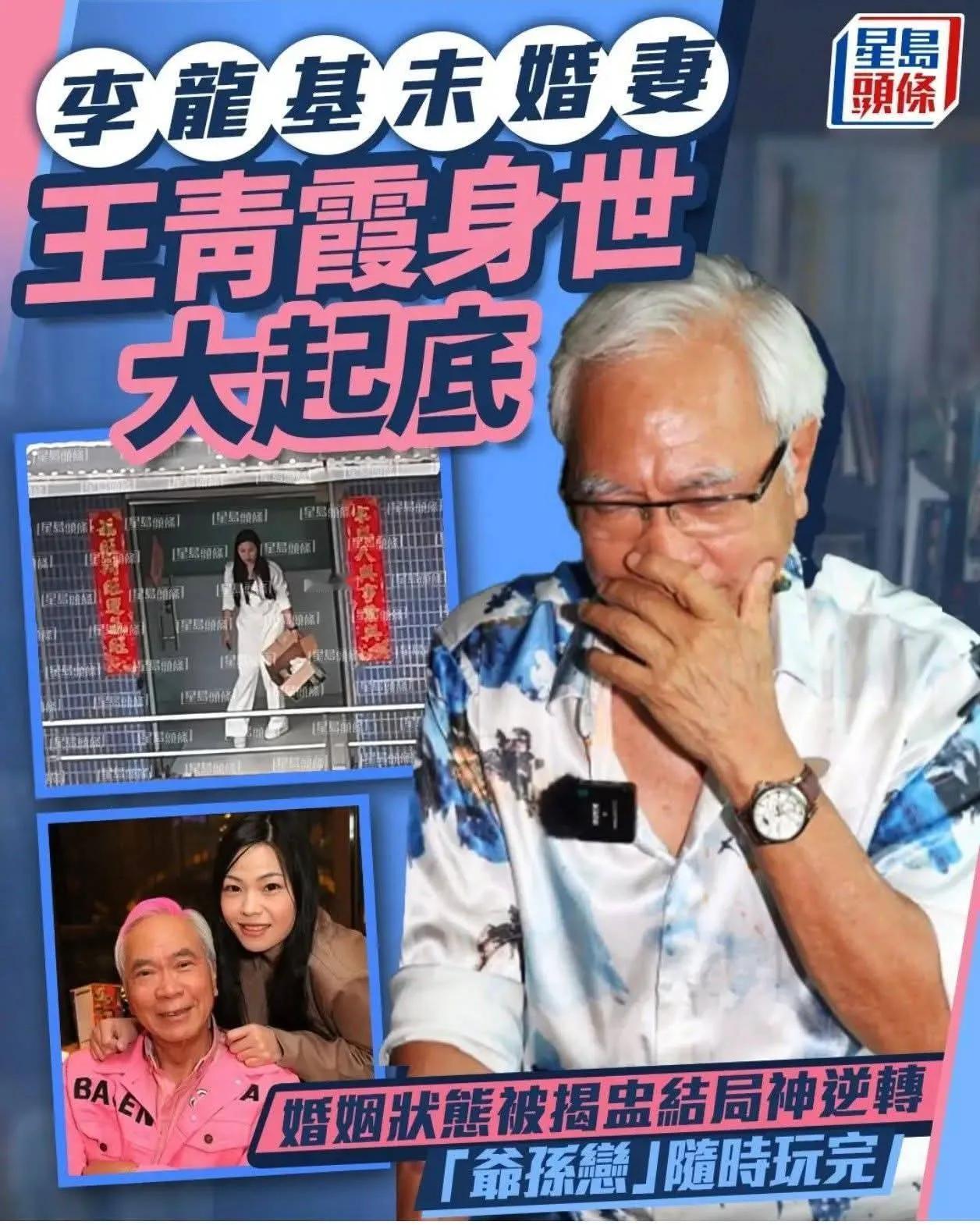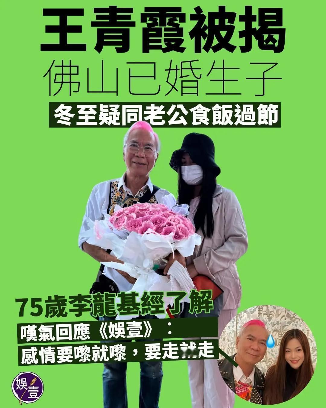 继「提款基2.0」何伯被骗收场后,「提款基1.0」终于在「爷孙恋」梦醒,基哥无奈接受「未婚妻」王青霞有老公有仔 75岁李龙基(基哥)与未婚妻王青霞(Chris)的「爷孙恋」一直不被外界睇好,王青霞去年因逾期居留、使用虚假文书及违反逗留条件在港接受僱佣工作等5项罪名,被判监25个月。 不过,二人关係都未被打翻,全因李龙基深情表示待必娶王青霞。可惜男方一厢情愿,女的出狱至今半年都未闻他们俩的婚讯,基哥曾向外称未婚妻想低调返家乡重操家族生意,他似乎并未愿意接受之前一直有指女的在内地有老公兼有仔的传闻。有媒体揭王青霞在佛山的生活状况,,并在父母的工厂上班,更拍得冬至当日与「丈夫」和妈妈在家食饭做节。据资料显示,王青霞与「丈夫」陈先生在2007拿结婚,2009年儿子出生。 这名39岁的王青霞在今年7月出狱回内地后,表面上扮低调,明显是知道未能再借李龙基之名在外招摇撞骗,说一套「借口」交李龙基向外界讲要低调生活,实质是向真老公「交人」,重回昔日生活;可怜基哥在香港「一支公」等呀等,登台做骚﹑起居饮食都係自己顾自己,冇「未婚妻」在身边照顾,显得有点孤单。 和何伯一样,基哥的「爷孙恋」再次给各位长辈们参考,除非自己"食力"雄厚,否则就乖乖收心养"性"。 李龙基王青霞最新消息传李龙基未婚妻王青霞已婚生子李龙基王青霞感情李龙基王青霞爷孙恋事件 何伯何太
