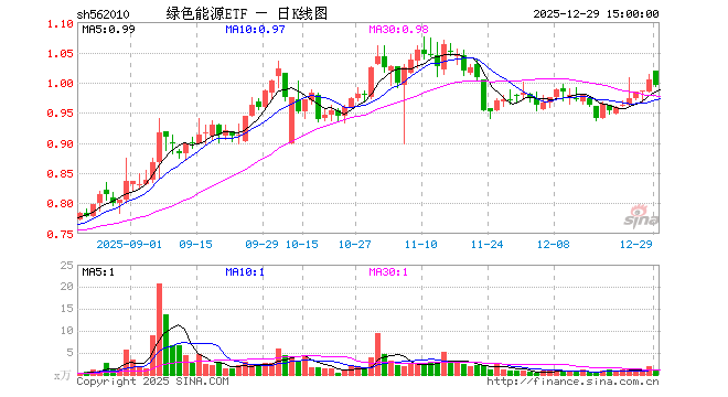 12月29日,绿色能源ETF(562010)跌0.90%,成交额112.43万元。当日份额减少100.00万份,最新份额为2129.87万份,近20个交易日份额减少200.00万份。最新资产净值计算值为2120.29万元。