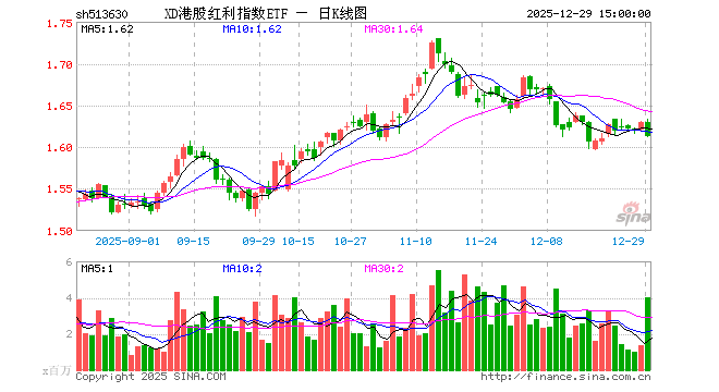12月29日,港股红利指数ETF(513630)跌1.04%,成交额6.55亿元。当日份额减少100.00万份,最新份额为103.25亿份,近20个交易日份额增加1.27亿份。最新资产净值计算值为167.28亿元。
