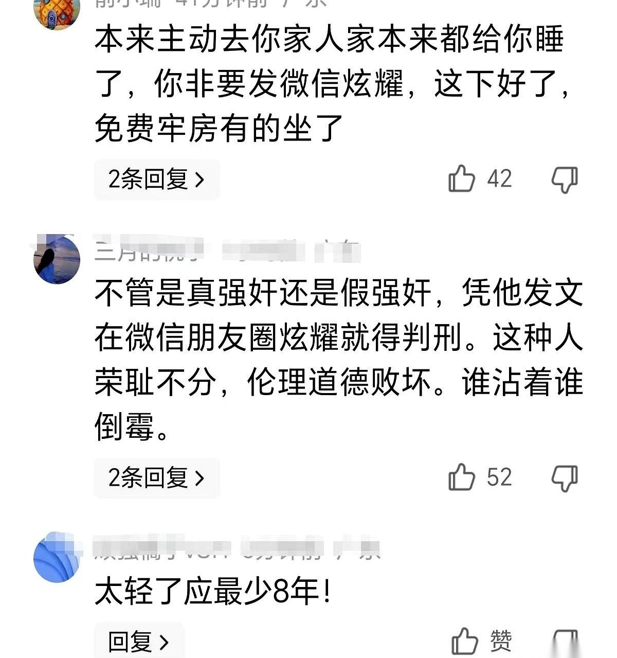 我跟你讲,有时候老天收人,都不需要自己动手。 他自己把刀递过去的。 完事儿了,还跑去群里炫耀,配上各种细节,洋洋得意,生怕兄弟们不知道他“战绩”有多辉煌。 结果呢?聊天记录传到了姑娘手里。 姑娘一看,懵了。原来那天晚上不是喝断片了那么简单。 这就叫什么?这就叫求锤得锤。 很多人还在那儿讨论,说女孩子去刚认识的男人家里,就该有“心理准备”。 我呸。 这是什么强盗逻辑? 我请你来我家喝茶,就等于默许你顺手牵羊把我电视搬走吗? 进门,不代表同意一切。喝多了,更不代表“你随意”。 这是常识,不是什么高深的道理。 说白了,他根本不是憋不住。 他就是享受那种征服感,那种把别人的尊严踩在脚下,再拿出去当战利品显摆的变态快感。 这事儿对他来说,不是一次私密的放纵,而是一场需要观众的表演。 他需要掌声,哪怕是来自一群狐朋狗友的。 可他忘了,互联网是有记忆的,截图是会说话的。 他亲手把自己的罪证,打包、整理、加旁白,然后精准地投递给了被害人。 还有比这更蠢的罪犯吗? 三年两个月。 真的,一点都不冤。 有时候,人最大的敌人,不是警察,不是对手,就是他那颗管不住的、又蠢又坏的虚荣心。