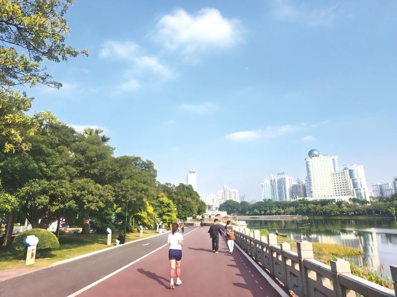 昨日,南宁阳光和煦,市民在南湖公园休闲健身。记者宋延康摄