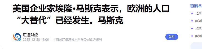 真正的敌人,不是俄罗斯,不是核弹打击。马斯克发出警报:欧洲民族大替换正在发生!在比利时布鲁塞尔,73%的儿童都不是欧洲人。整个民族大替代,正在发生! 比利时统计局最近发布的一组数据,在欧洲引起了不小的震动。作为欧盟总部所在地,布鲁塞尔正在经历一场深刻的人口结构更替。 数据非常直观,在布鲁塞尔17岁以下的未成年人中,拥有纯正比利时血统的孩子仅占10.56%。这意味着,这座城市的下一代,绝大多数都来自移民背景。 如果观察整座城市的居民构成,外来裔人口的比例已经接近80%。这种变化并非突然发生的,这是过去几十年里,人口自然增减与政策导向共同叠加的结果。 现在的布鲁塞尔,走在街头听到的母语、看到的宗教习惯和生活方式,都在发生大规模替换。 那个曾经充满传统比利时风情的首都正在变得模糊,转而变成一个身份极其复杂、国际化程度极高的聚居区。 这种剧变的推手之一,是长期执行的“家庭团聚”政策。按照现行规定,一个人只要获得了居住权,往往就能带动整个家族移入。 这种连锁效应扩散极快,而生育率低迷的本土人口在这样的速度面前,几乎没有招架之力。 对此,马斯克曾公开提出质疑,认为这种人口结构的剧烈变动背后,可能存在某种政治考量。 有一种观点人文,部分政治力量通过引入大量依赖政府补贴的群体,可以从底层改变选民结构。由于这部分人群对特定福利政策的依赖,他们往往会成为某些政党的长期票仓。 批评者则认为,这是在用长远的民族文化认同,去换取短期的选举优势。 布鲁塞尔的情况并非孤例。在德国金融中心法兰克福,本土居民也已经变成了“少数派”。当地幼儿园和学前班里,拥有移民背景的孩子占比已经超过了75%。 现在的欧洲,正被困在一个人道主义义务、劳动力短缺和文化存续的三角难题里。 欧洲与美国那种“大熔炉”模式有着本质区别,欧洲国家的认同感通常扎根于具体的民族历史和土地,这导致它很难像美国那样实现快速的文化融合。 现实情况是,老居民在自己熟悉的家园里感到越来越孤立,而新移民也难以对当地的主流价值观产生深层归属感。这种缺乏互动的共存,正在挑战欧洲社会的承受上限。 布鲁塞尔那10%的本土儿童,二十年后将面对一个全然陌生的社会。当一个社会失去了地理和文化上的归属感,它还能否维持原有的生命力和凝聚力,目前谁也没有答案。 信息来源:《美国企业家埃隆·马斯克表示,欧洲的人口“大替代”已经发生。马斯克》,混通财经,2025年12月28日。