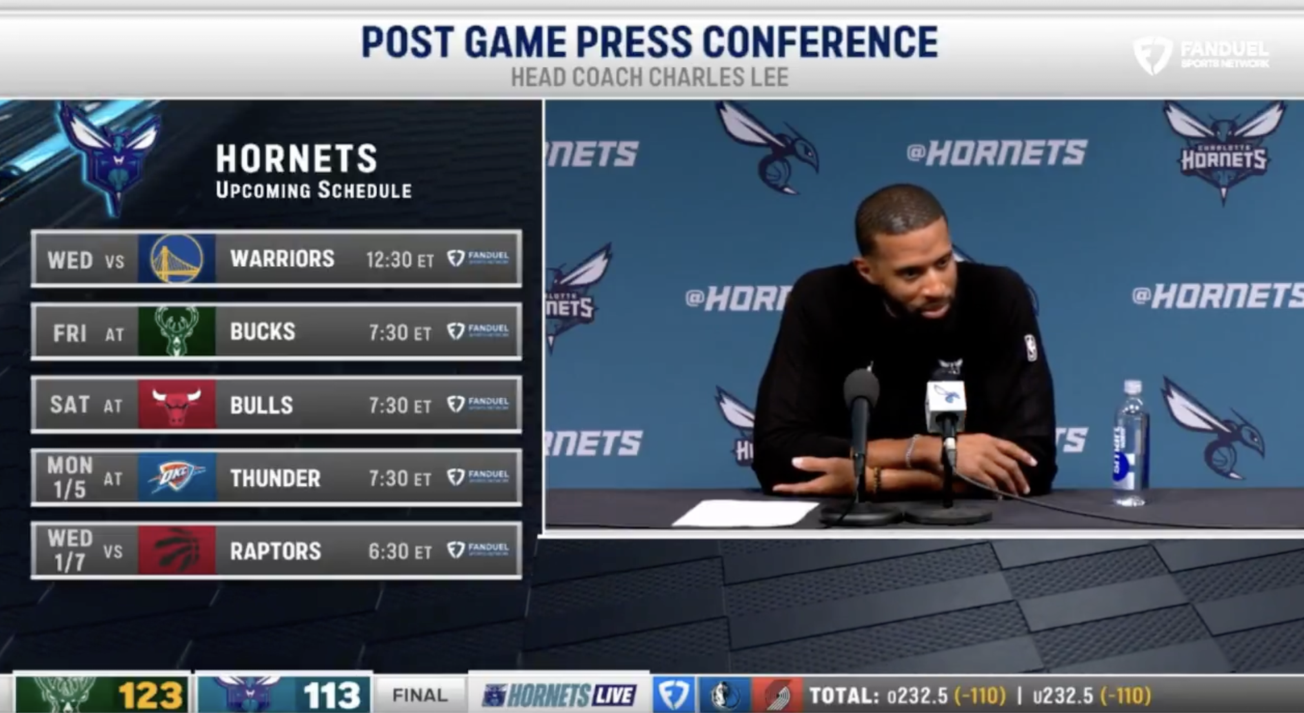 虎扑12月30日讯今日NBA常规赛,黄蜂113-123不敌雄鹿。
