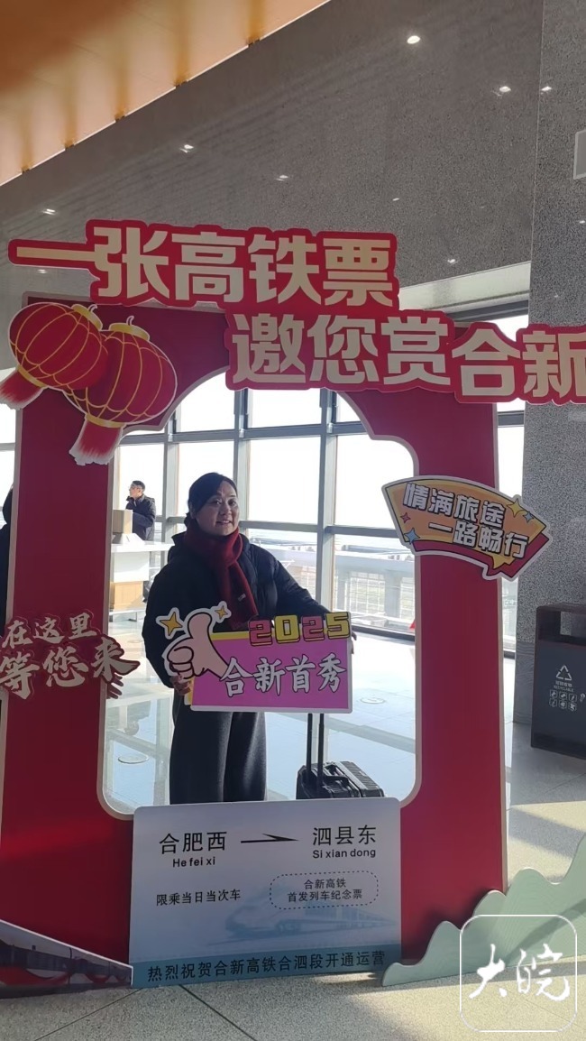 大皖新闻讯2025年12月30日,合新高铁(合肥西-泗县东段)开通。从泗县东站上车后,最快仅需78分钟即可抵达合肥西站,比自驾节省约100分钟。大皖新闻记者采访获悉,当地有不少居民专门买票体验家门口的高铁。