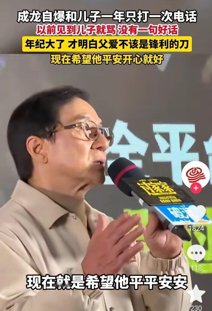 成龙在《过家家》首映礼上说的话,听得人心里发酸。他说和儿子一年只打一次电话,以前见着儿子就骂,没一句好话,后来连这通电话都没了——直到年纪大了才懂,那把“为你好”的骂,其实是扎在亲子关系里的刀。 以前总觉得“严父”是种深沉的爱,可骂声裹着的关心,早被锋利的语气磨没了。孩子接收到的不是“爸爸在乎我”,是“我怎么做都不对”,慢慢就把心门关上了。 现在他说只盼儿子平安开心,这话里藏着多少后知后觉的软。其实亲子间哪需要那么多“教训”,好好说话,比什么都重要。 你说,要是早明白“爱不用带刺”,多少亲子关系能少点遗憾?