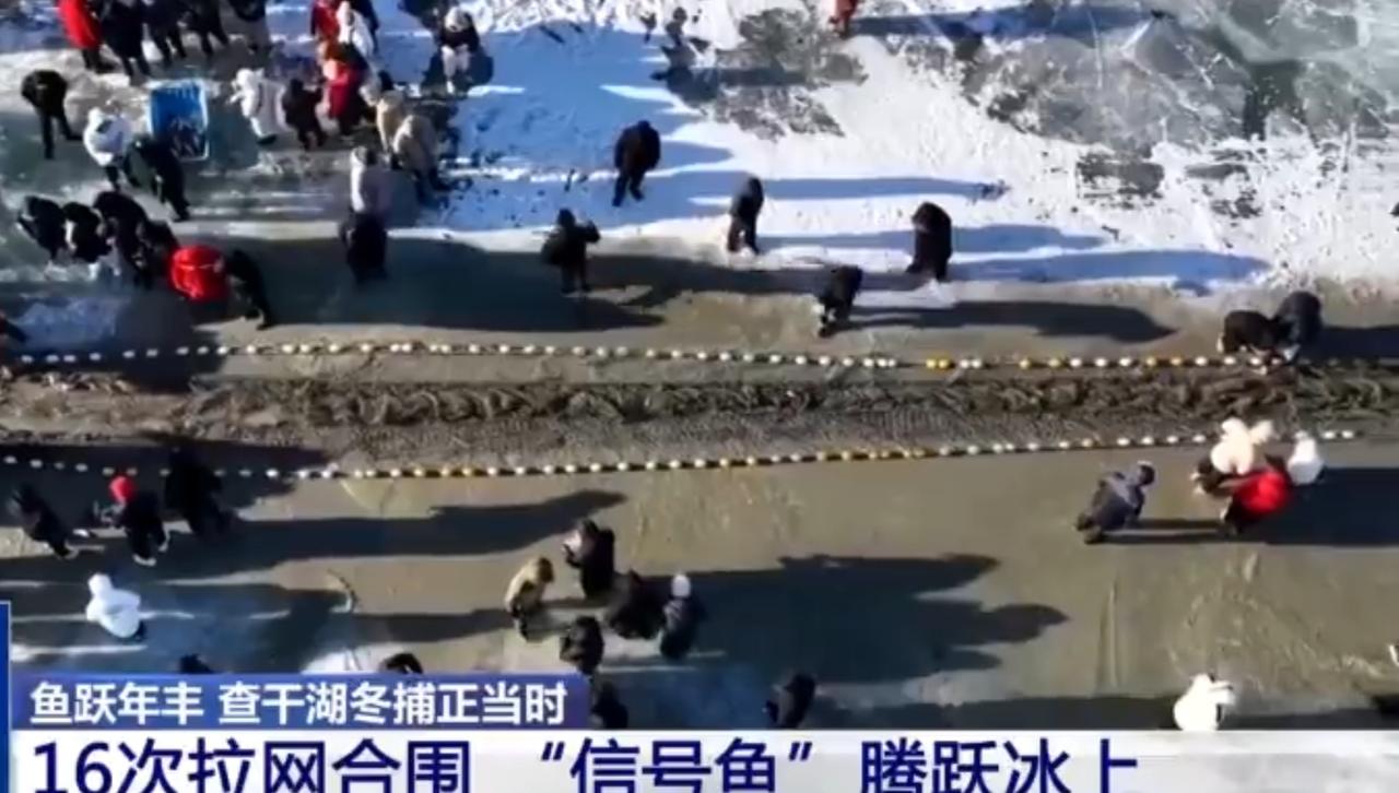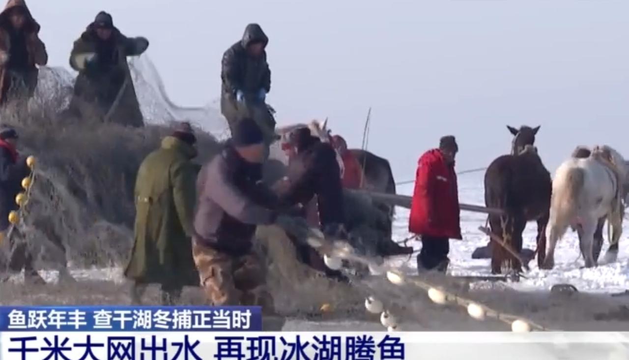 查干湖的冰面成了冬日里最热闹的舞台,记者身着厚袄在现场报道,渔民们合力拉着千米大网,16次拉网合围后,“信号鱼”率先腾跃冰面,随后万千鲜鱼破水而出。冰湖腾鱼的盛景震撼着围观的人群,这古老的冬捕技艺,在冰雪间奏响了丰收的乐章,也让查干湖的冬日充满了独特的生命力。