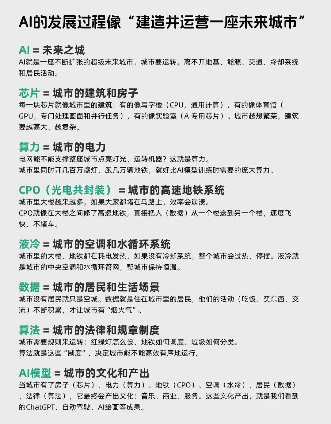 AI算力三张牌:CPO卖全球,芯片卡脖子,液冷刚起步。 我们可以把算力想象成一座