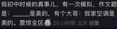 我初中时候的真事儿,有一次模拟,作文题是:是美的,有个大哥:我家空调是美的